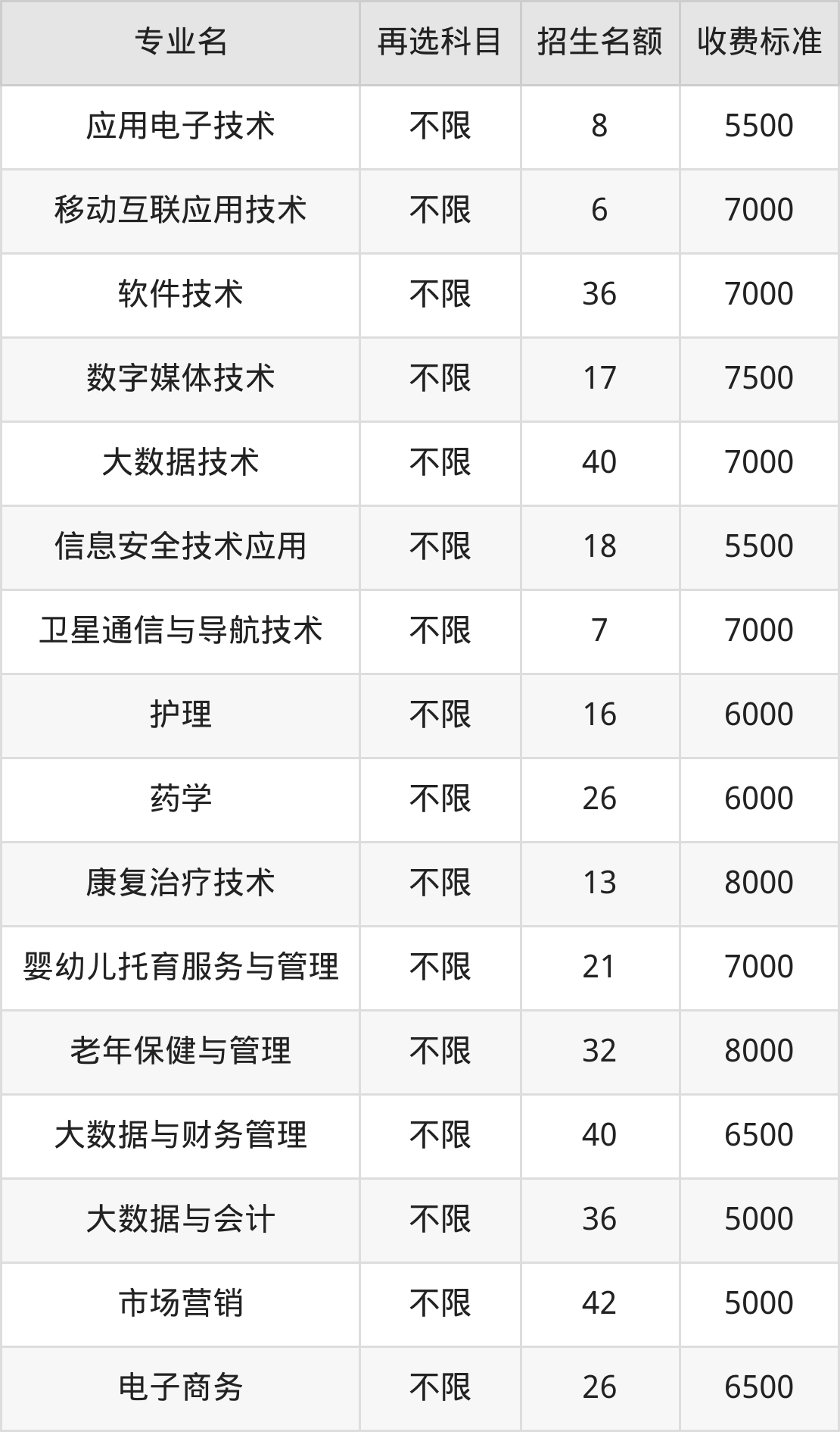 梧州职业学院在历史组高职高专批招生的各个专业,每年的学费是4600元-8000元。招生人数最多的专业是学前教育,2024年招125人,学费是6500元。