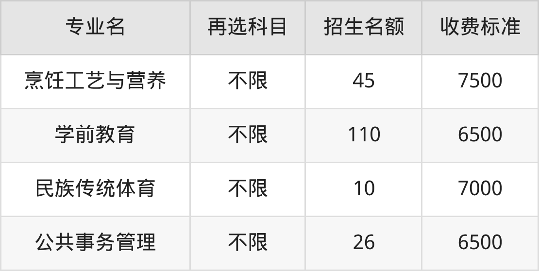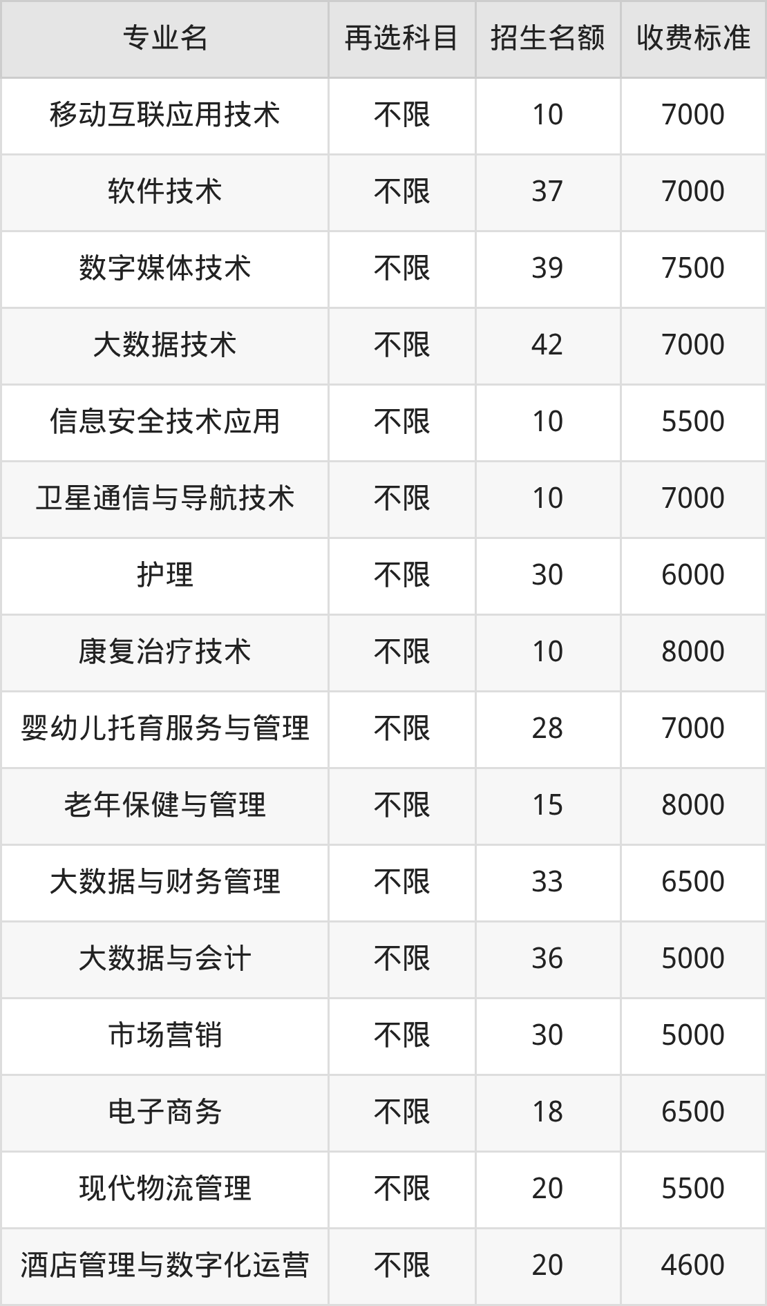 梧州职业学院在历史组高职高专批招生的各个专业,每年的学费是4600元-8000元。招生人数最多的专业是学前教育,2025年招110人,学费是6500元。