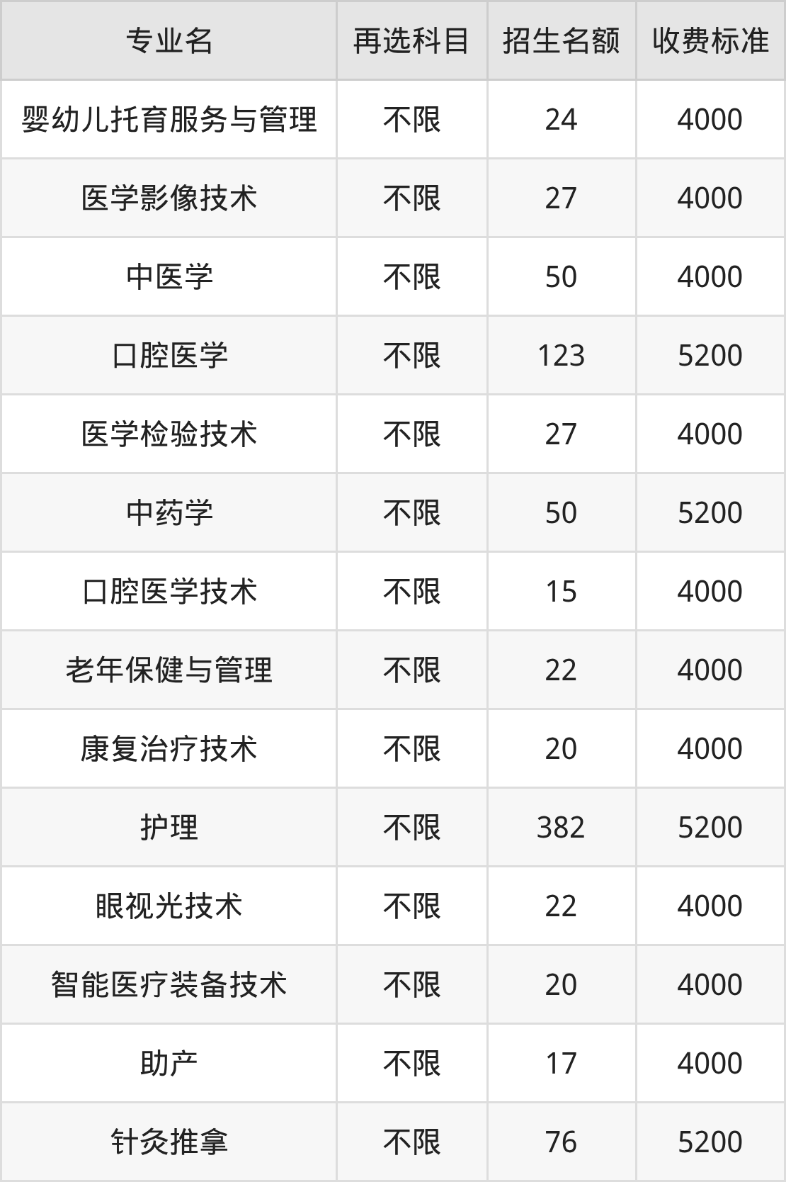 | 专科高职批 | 物理 | 口腔医学技术 | 15 |