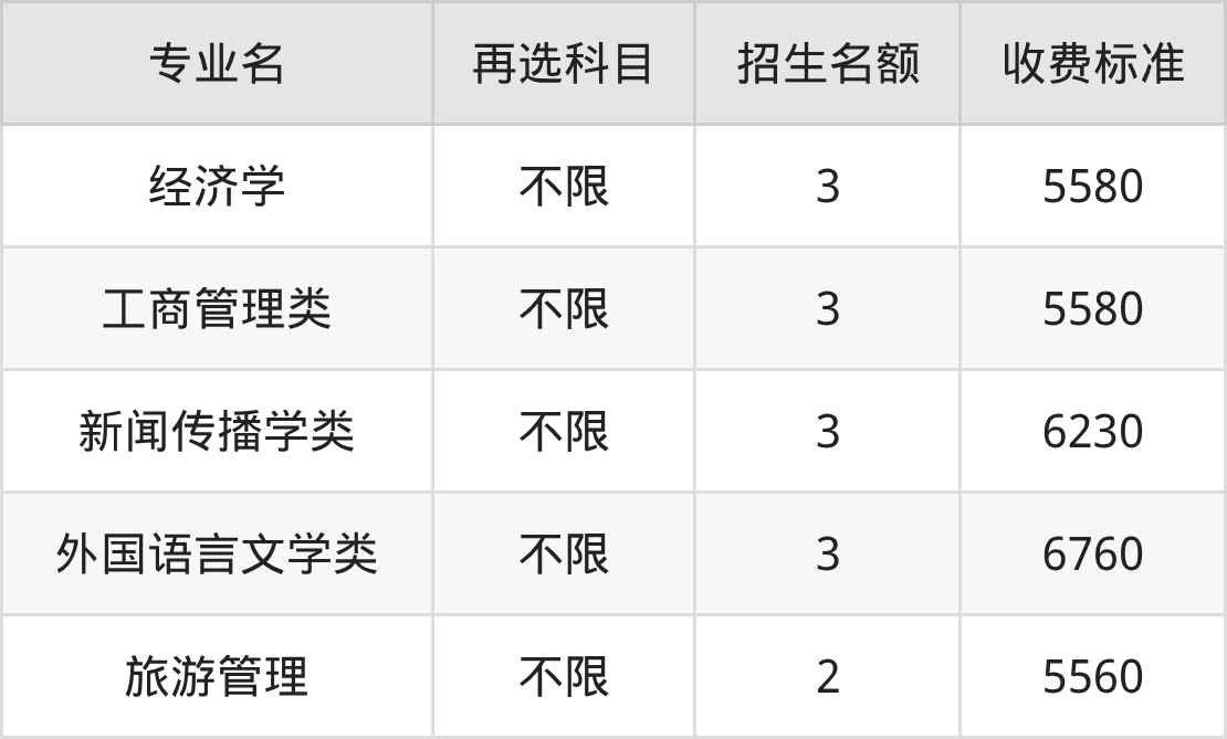 重庆交通大学在历史组本科提前批B招生的各个专业,每年的学费是5560元-6760元。招生人数最多的专业是经济学,2025年招3人,学费是5580元。