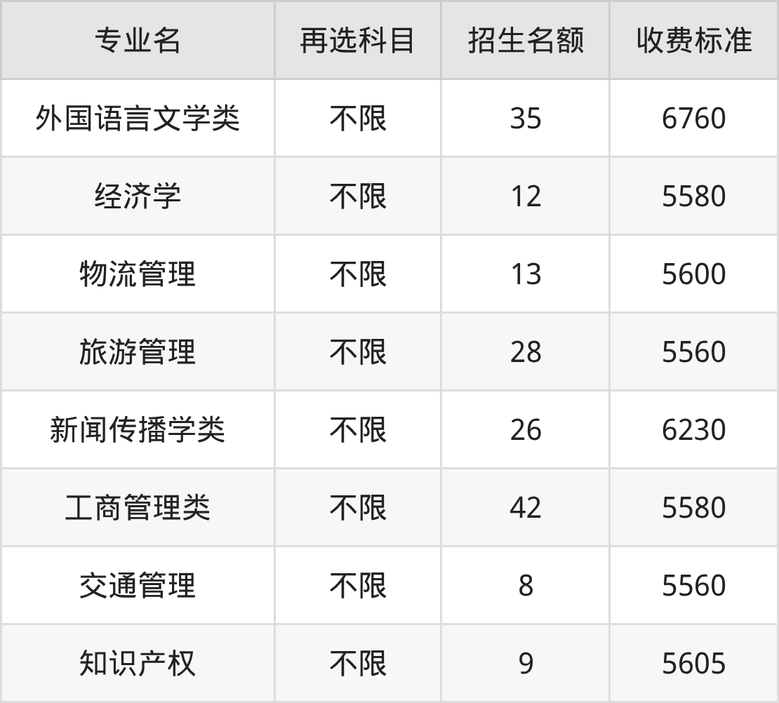 重庆交通大学在历史组本科批招生的各个专业,每年的学费是5560元-6760元。招生人数最多的专业是工商管理类,2025年招42人,学费是5580元。