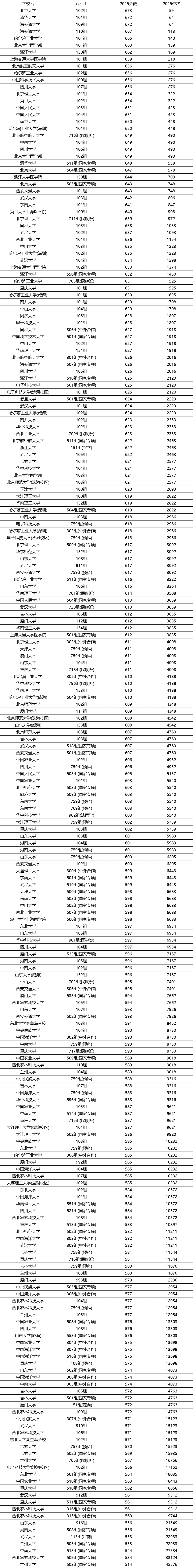 以下是全国39所985大学2025年在广西高考物理类本科批的最低录取分数线及位次汇总,2026年广西物理类考生请参考: