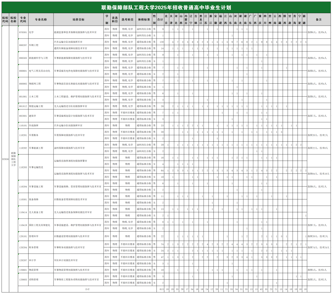 2025年,联勤保障部队工程大学在全国各省的录取情况呈现出分数线跨度大、受选科和体检要求影响明显等特点。