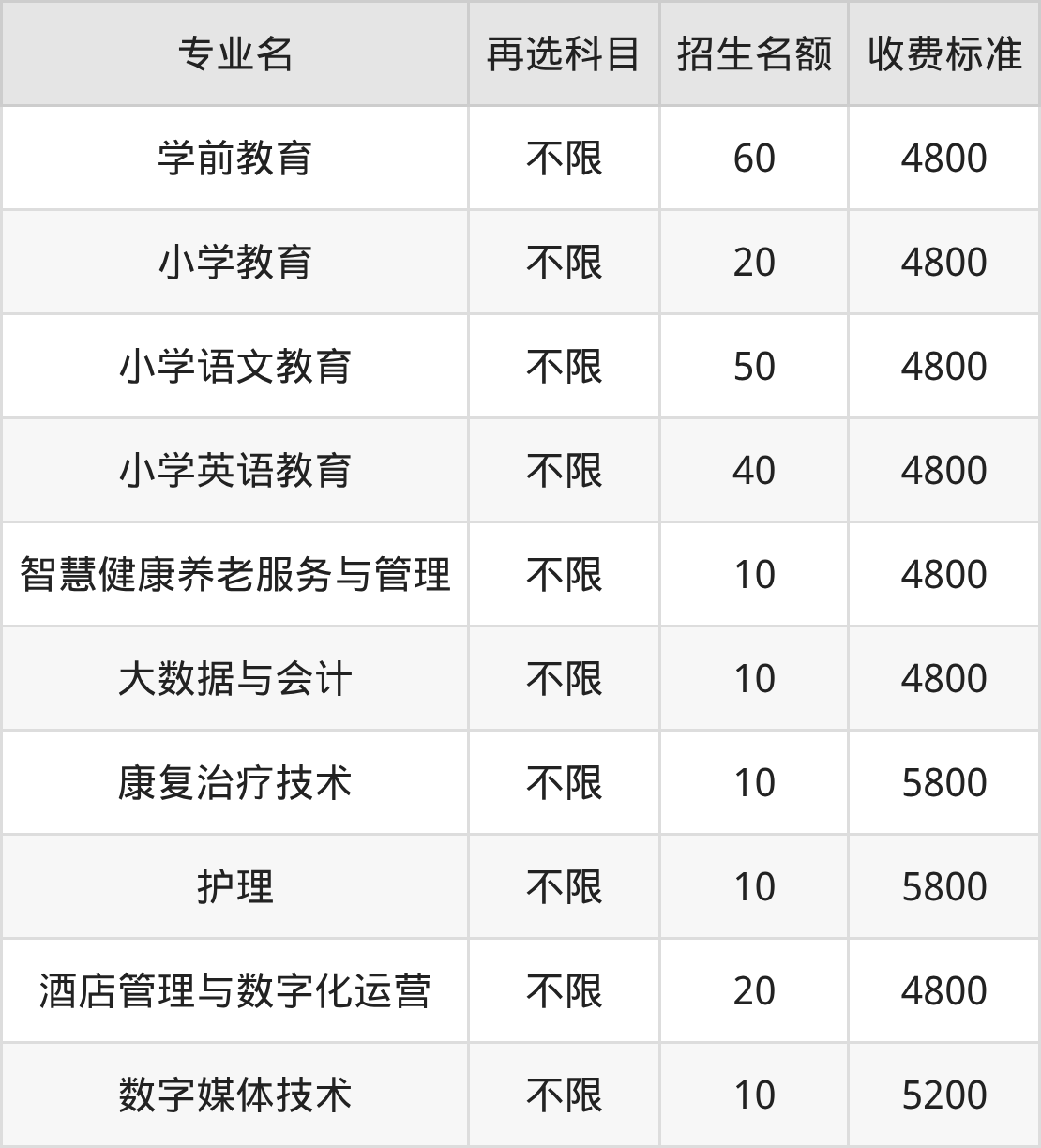 | 高职专科批 | 历史 | 智慧健康养老服务与管理 | 10 |