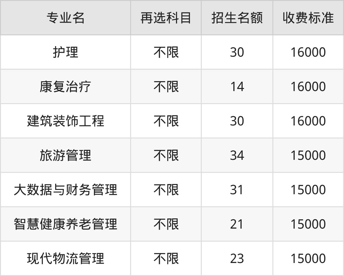 | 专科高职批 | 物理 | 中医康复技术 | 11 |