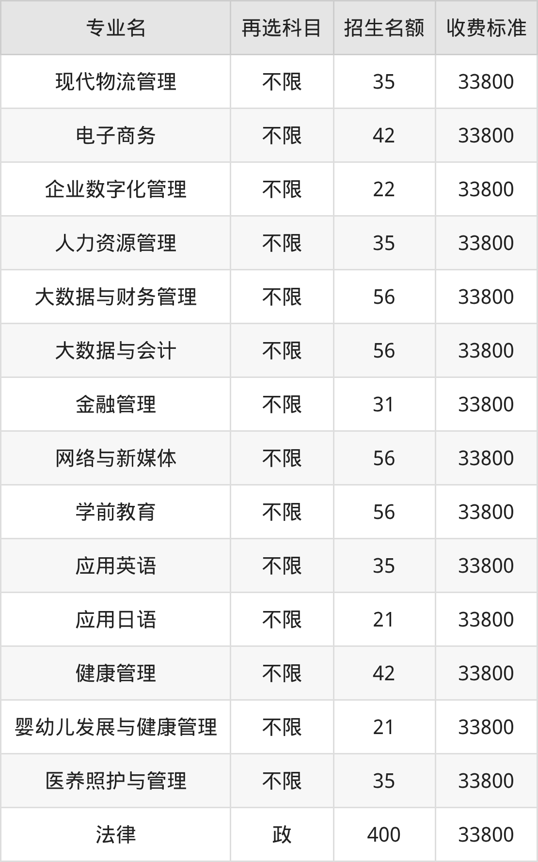 15.现代物流管理:学费是33800元