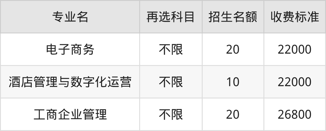 | 专科高职批 | 历史 | 电子商务 | 20 |