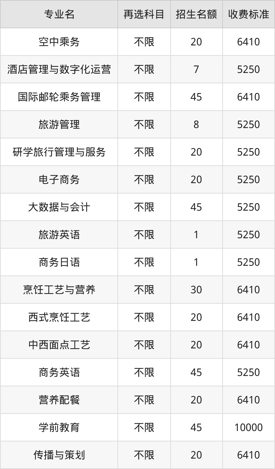 | 专科高职批 | 历史 | 旅游管理 | 8 |