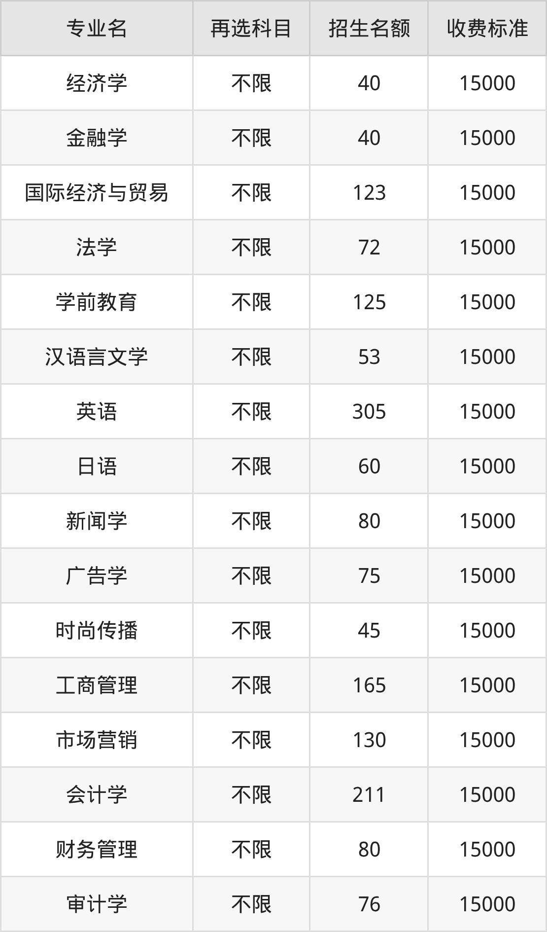 | 本科批 | 物理 | 国际经济与贸易 | 80 |