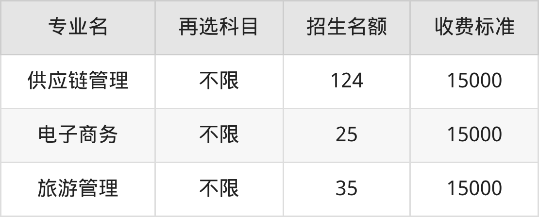 | 本科批 | 历史 | 供应链管理 | 124 |