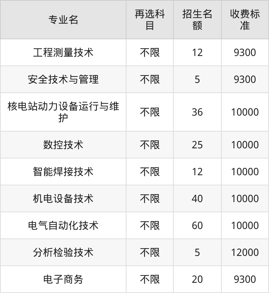 二、广元中核职业技术学院各专业收费标准