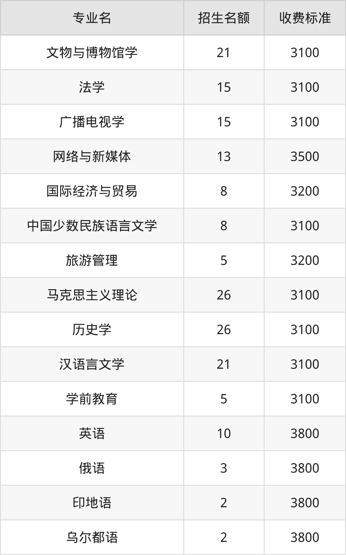 塔里木大学在文科本科二批招生的各个专业,每年的学费是3100元-3800元。招生人数最多的专业是马克思主义理论,2025年招26人,学费是3100元。