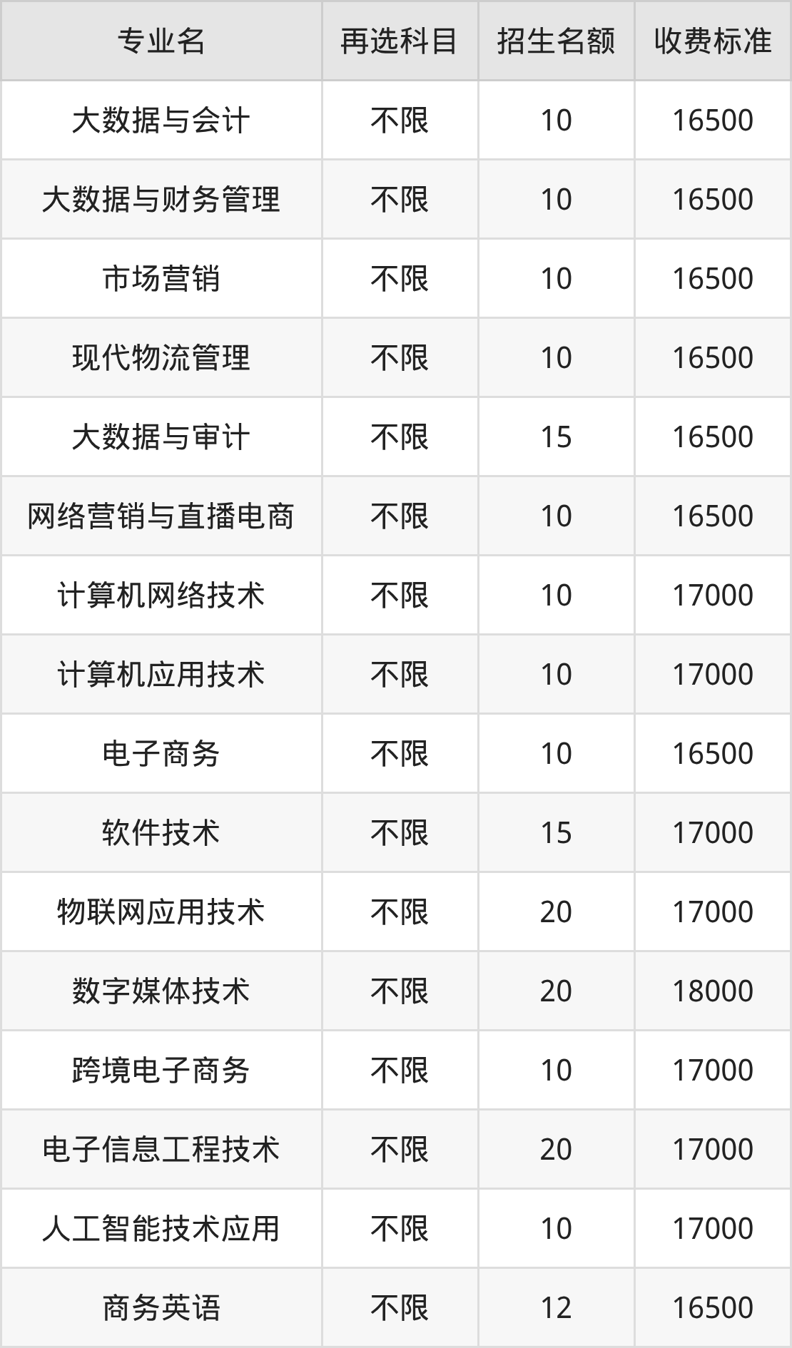| 专科高职批 | 物理 | 电子商务 | 10 |