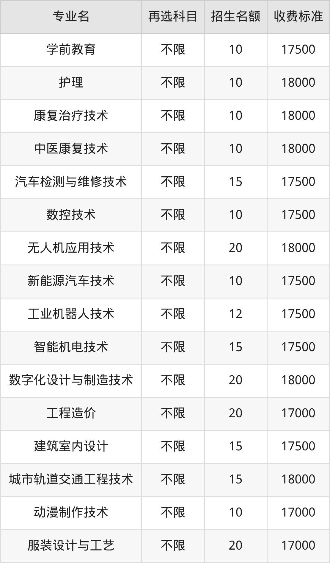 | 专科高职批 | 历史 | 城市轨道交通工程技术 | 15 |
