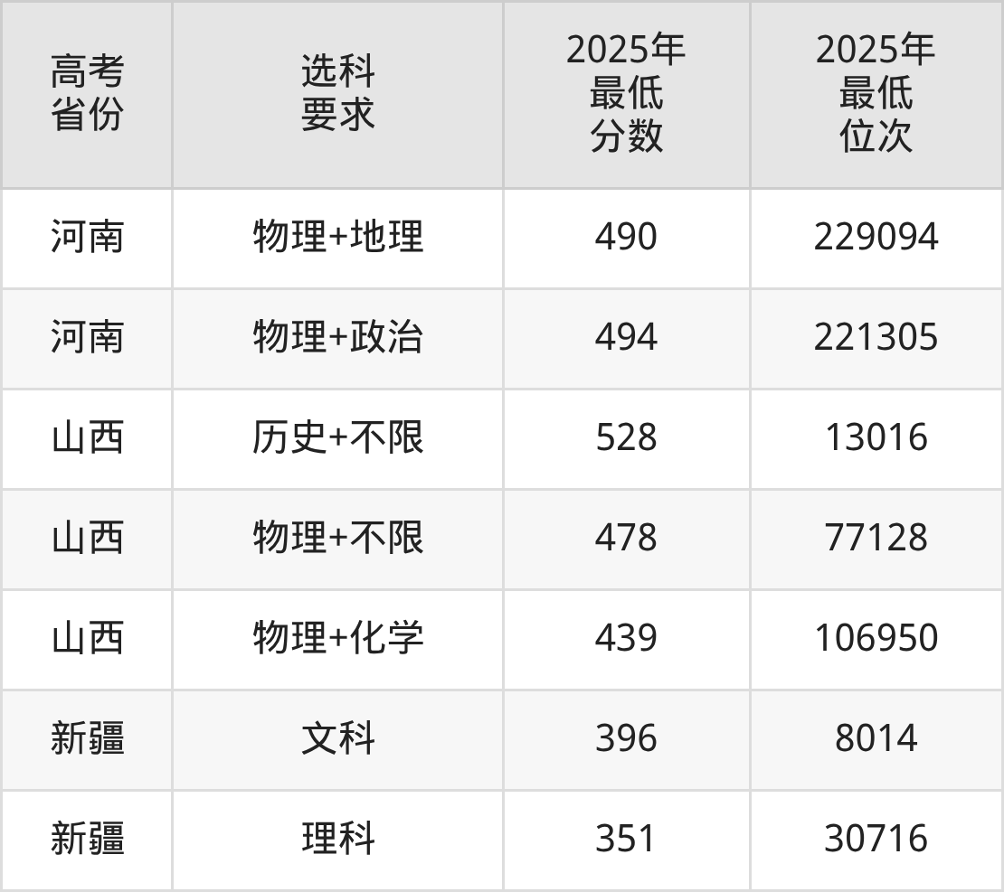 在2025年新疆高考理科招生时,211收分最低的是四川农业大学,最低分是421分、位次是18415位。再看曲靖师范学院,2025年在新疆理科的最低录取分数线是351分,最低位次是30716位。