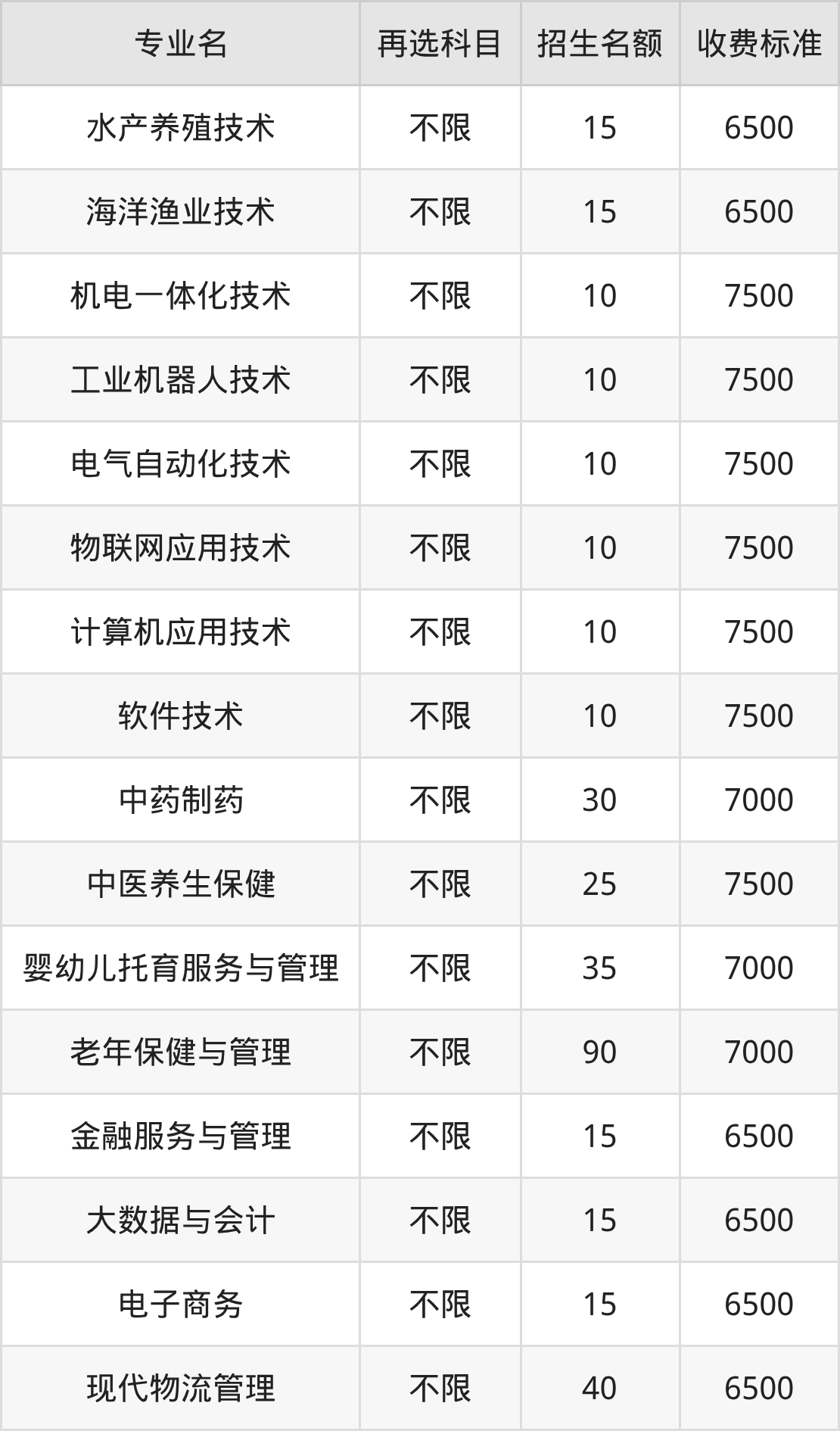 | 高职高专批 | 物理 | 机电一体化技术 | 40 |