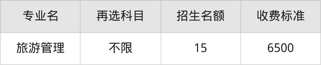 | 高职高专批 | 物理 | 旅游管理 | 15 |