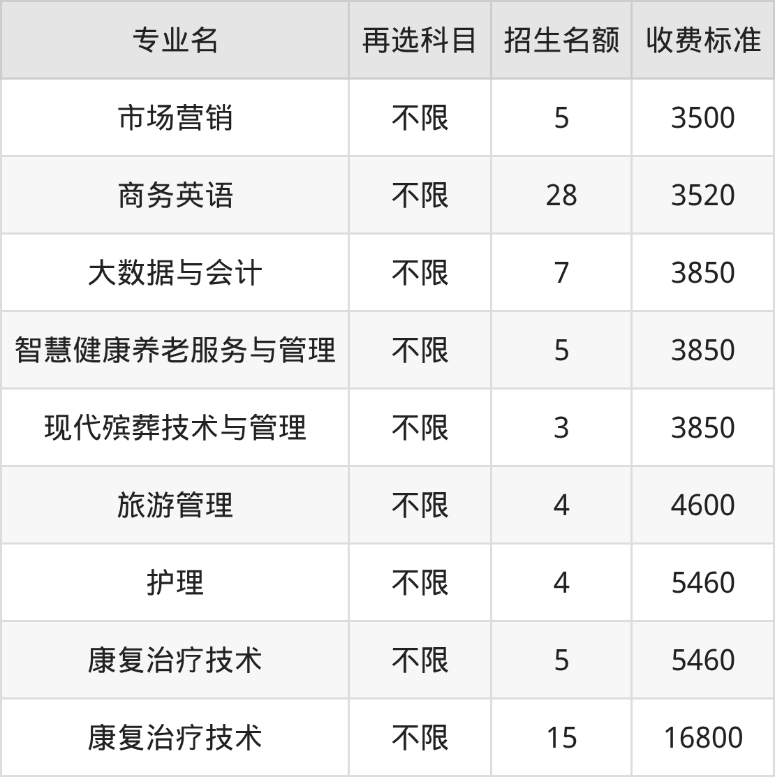 | 高职专科批 | 历史 | 康复治疗技术 | 15 |