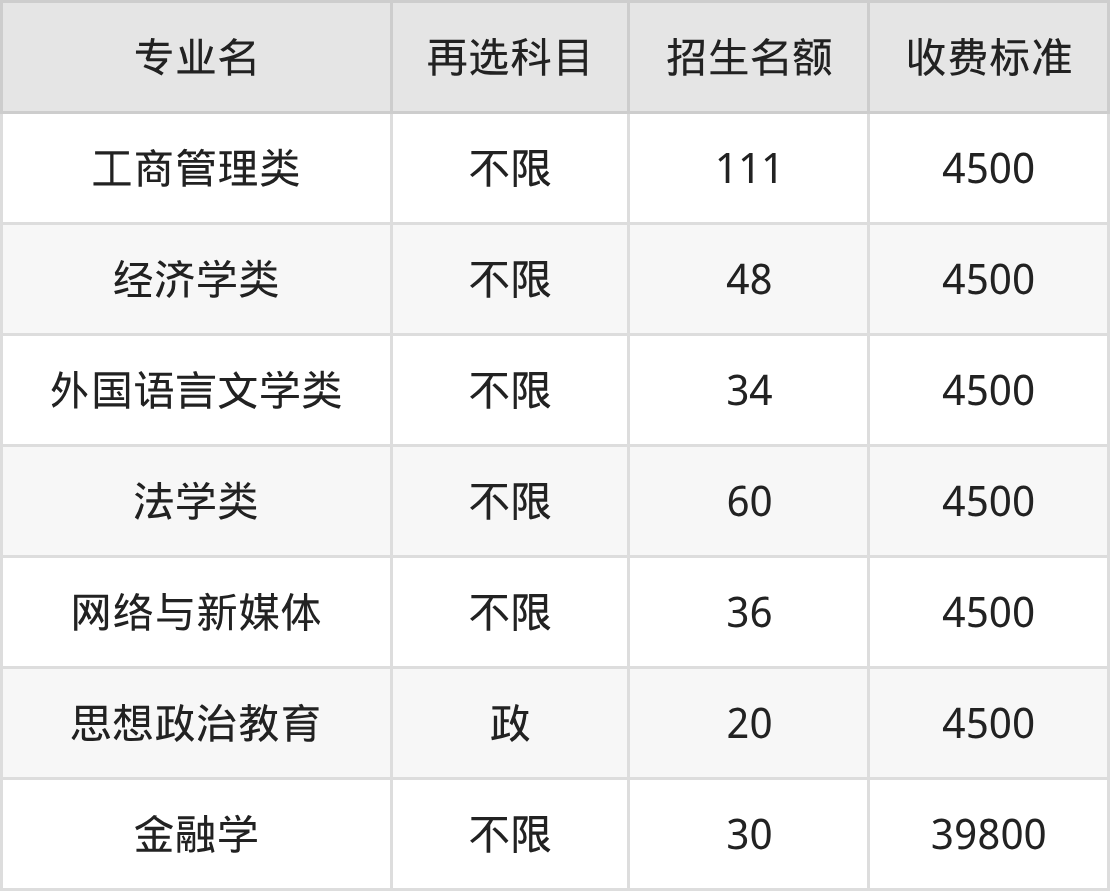 武汉理工大学在历史组本科批招生的各个专业,每年的学费是4500元-39800元。招生人数最多的专业是工商管理类,2025年招111人,学费是4500元。