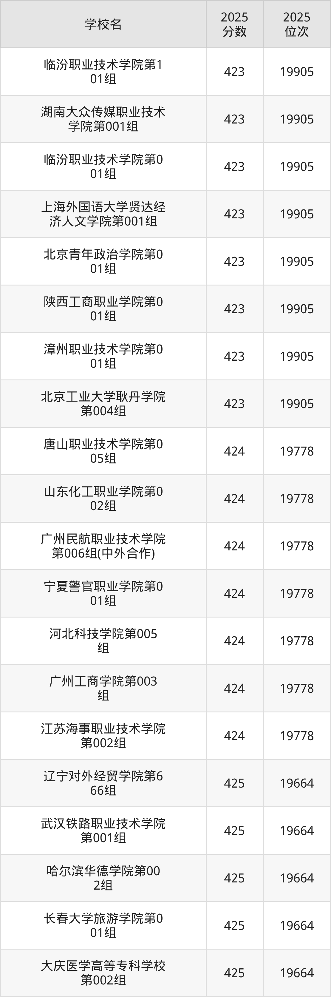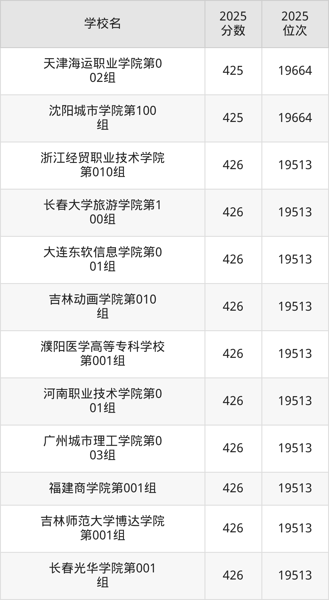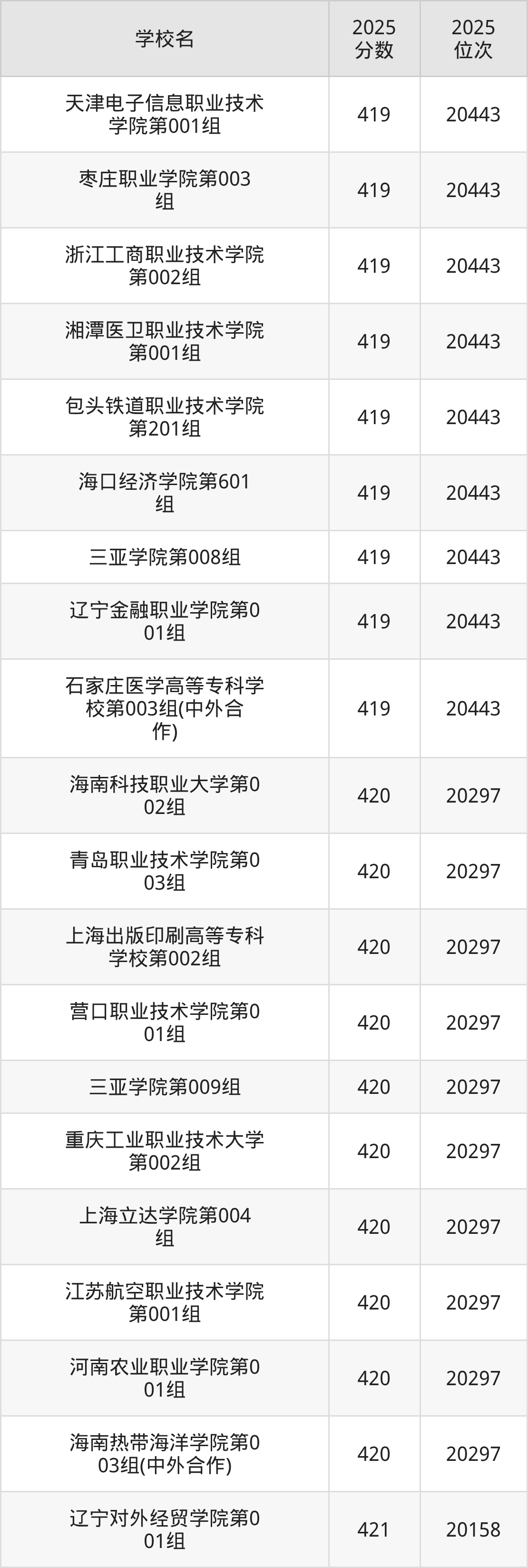 | 学校名 | 2025 分数 | 2025 位次 |