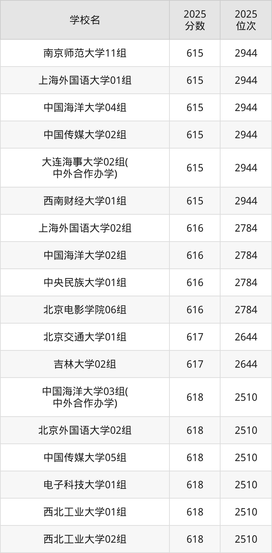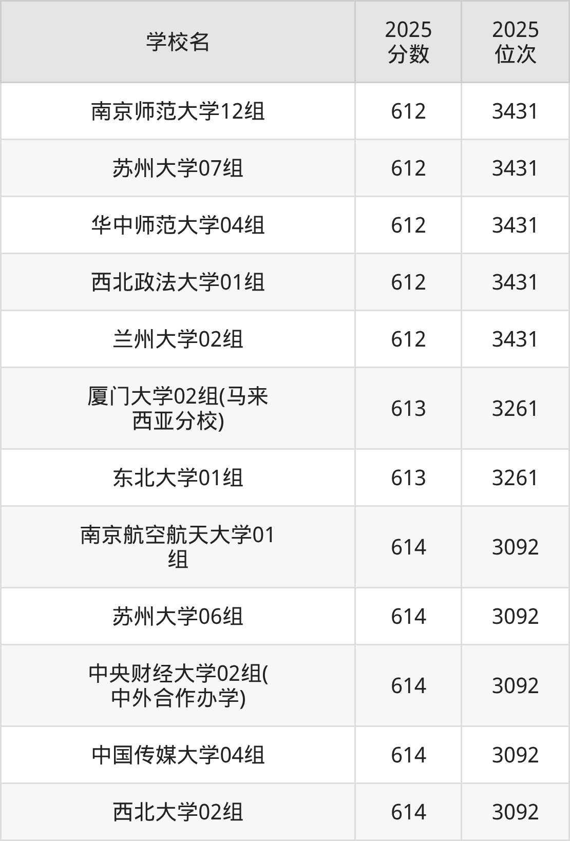 | 学校名称 | 2025 位次 | 2024 位次 | 2023 位次 |