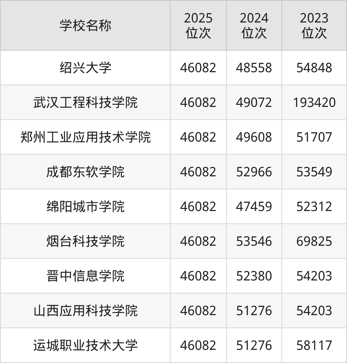 绍兴大学:2025年的最低分位次是46082名,2024年是48558名,2023年是54848名。招生专业包含:日语、学前教育。