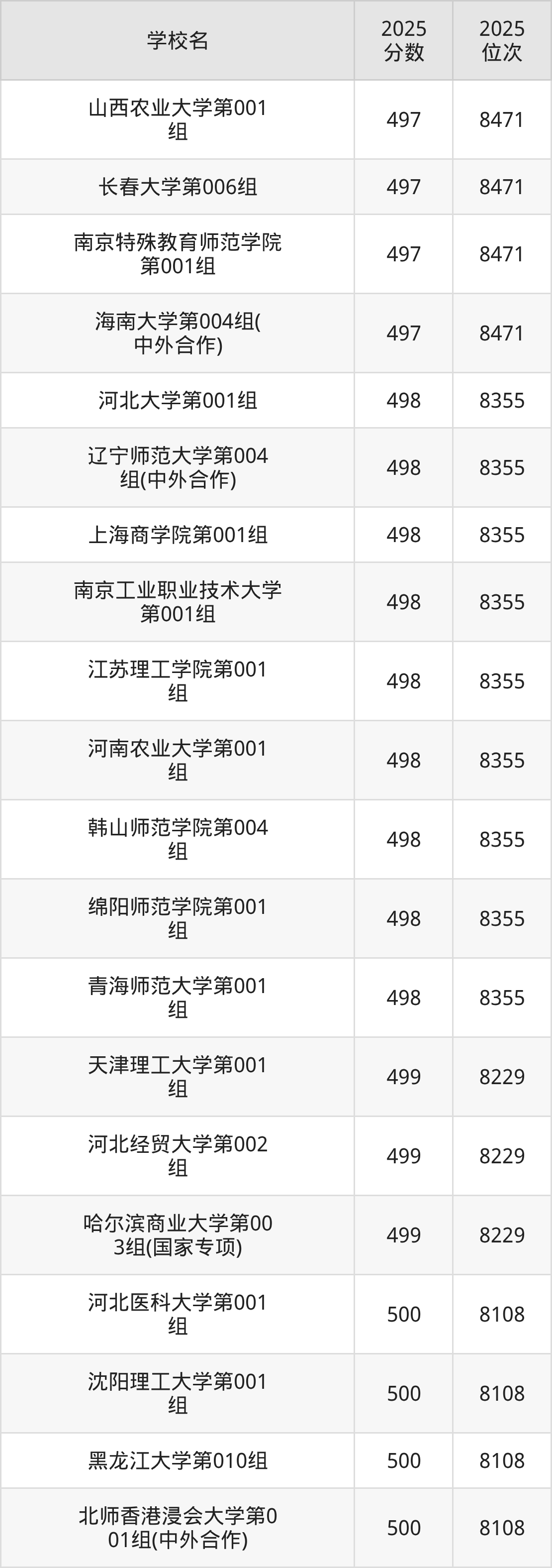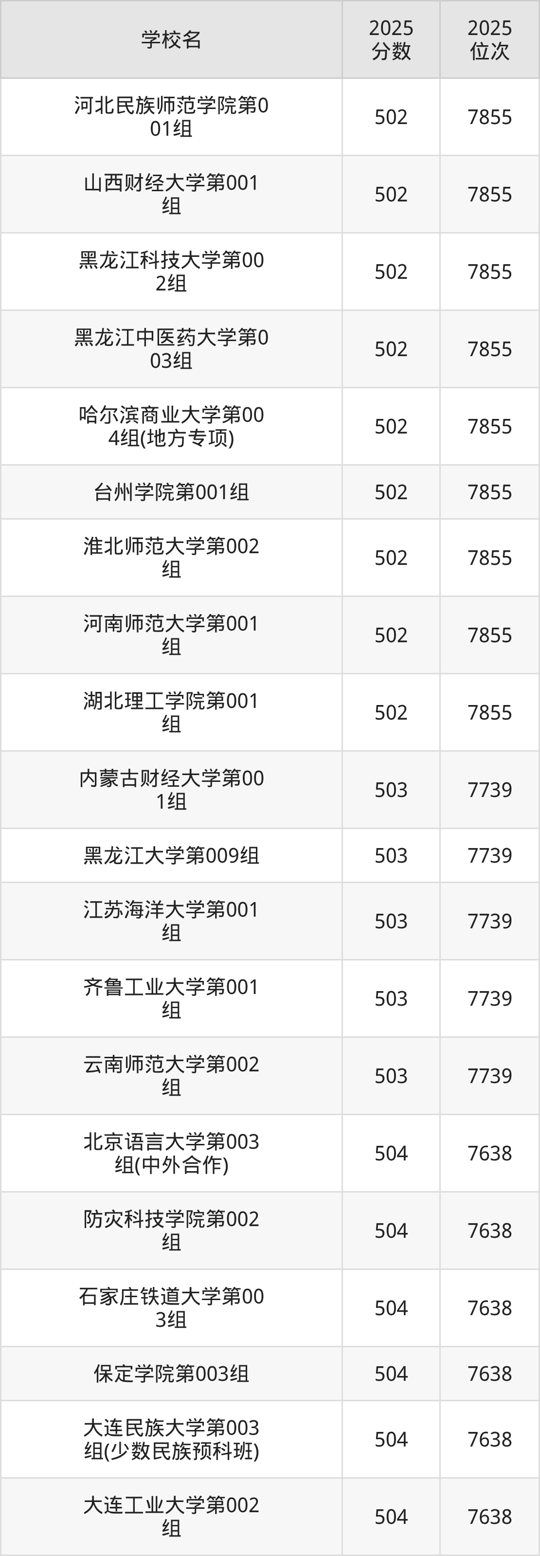 | 学校名 | 2025 分数 | 2025 位次 |