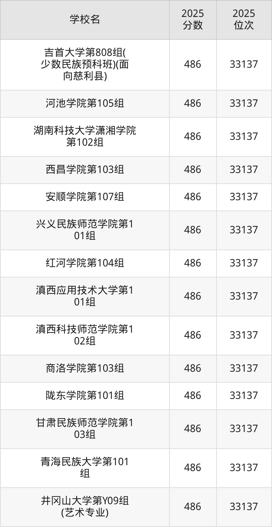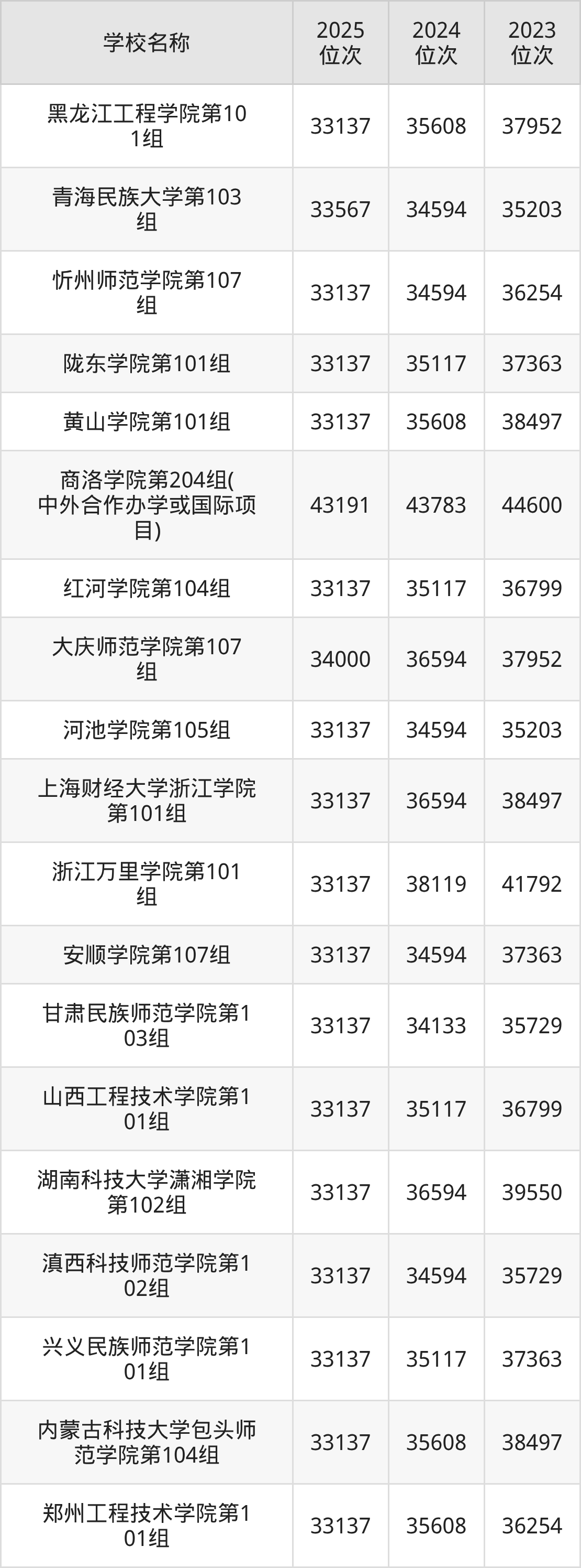 青海民族大学第103组:2025年的最低分位次是33567名,2024年是34594名,2023年是35203名。招生专业包含:社会工作、秘书学、旅游管理。