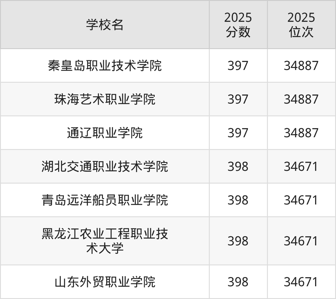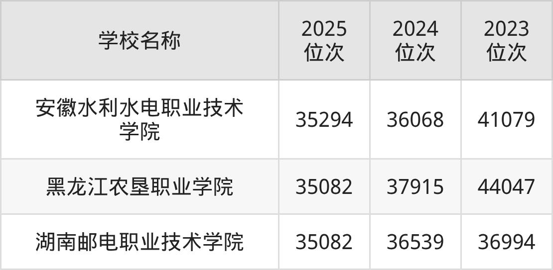 | 学校名称 | 2025 位次 | 2024 位次 | 2023 位次 |
