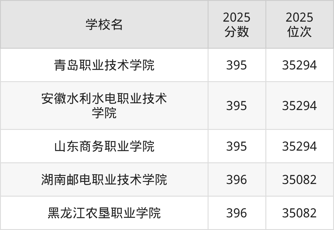 黑龙江农垦职业学院:2025年的最低分位次是35082名,2024年是37915名,2023年是44047名。招生专业包含:护理、医学检验技术、康复治疗技术、小学语文教育。