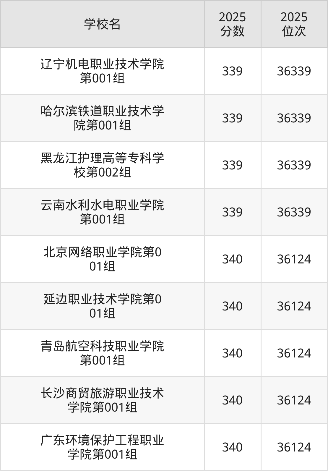包含:辽宁机电职业技术学院、哈尔滨铁道职业技术学院、黑龙江护理高等专科学校、云南水利水电职业学院、北京网络职业学院、延边职业技术学院、青岛航空科技职业学院、长沙商贸旅游职业技术学院、广东环境保护工程职业学院。