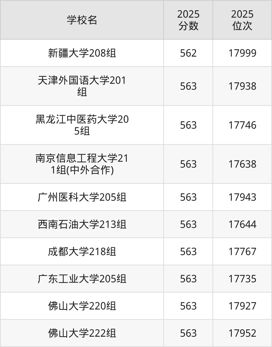 | 学校名称 | 2025 位次 | 2024 位次 | 2023 位次 |