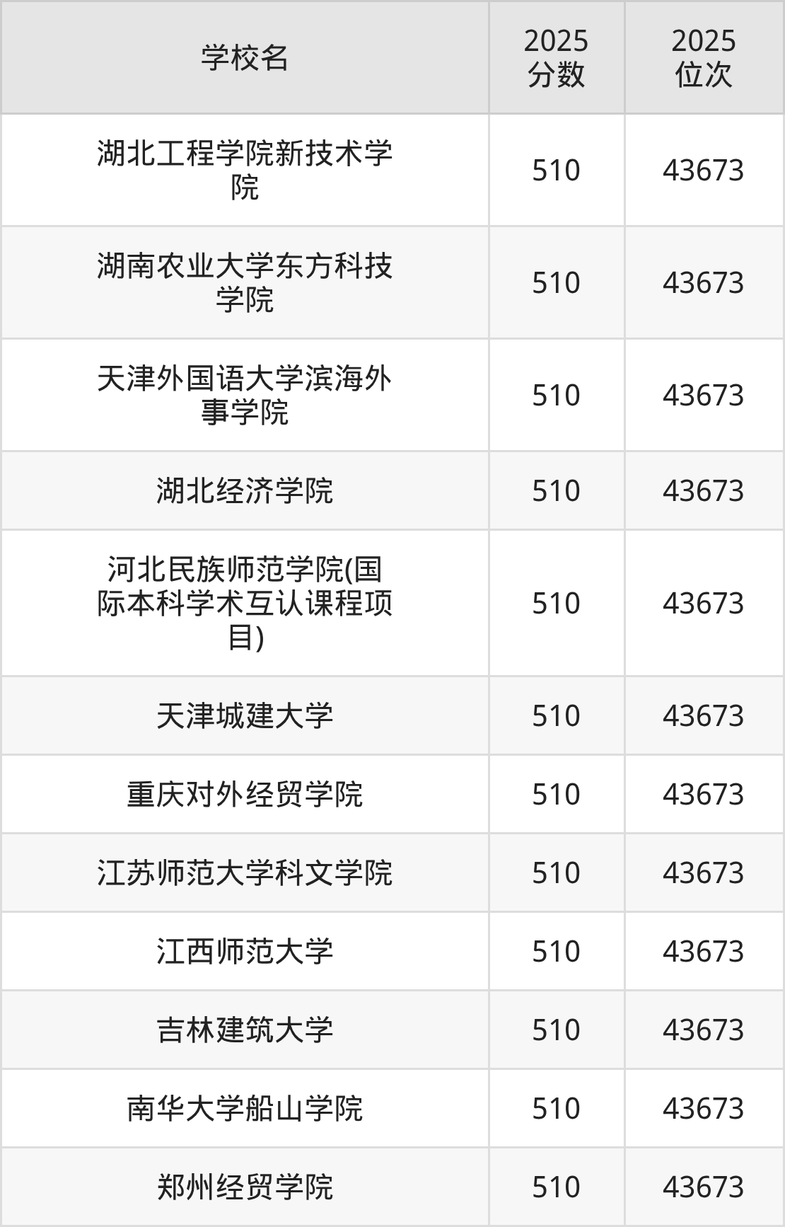 稳妥能上的大学:锁定2025年最低录取位次44000-44500名的院校,位次与考生当前位次基本匹配,录取概率较高,是报考核心区间。