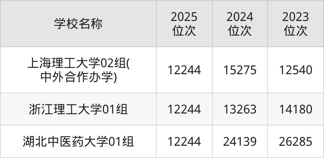 | 学校名称 | 2025 位次 | 2024 位次 | 2023 位次 |