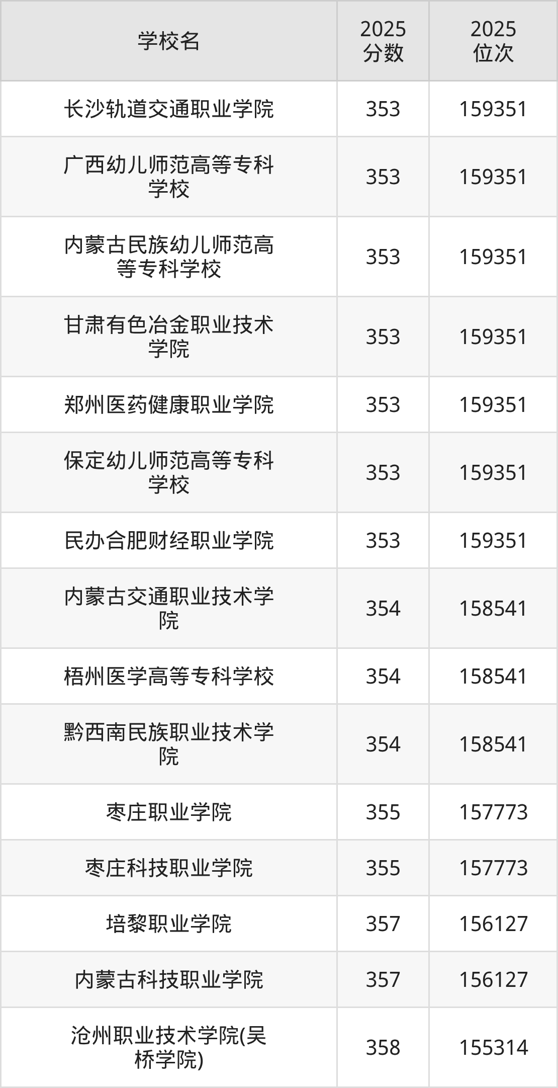 | 长春职业技术大学 | 499 | 162246 |