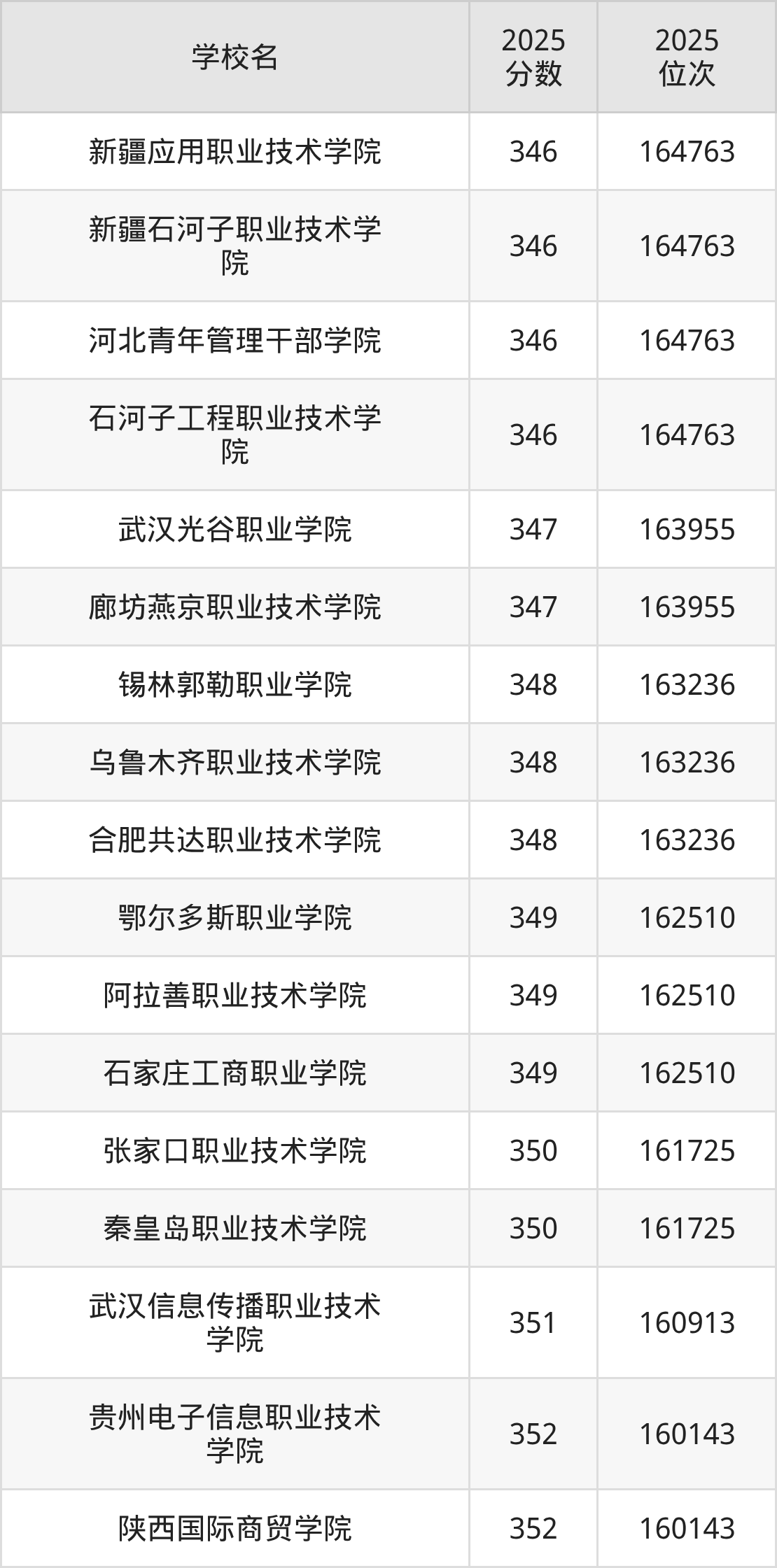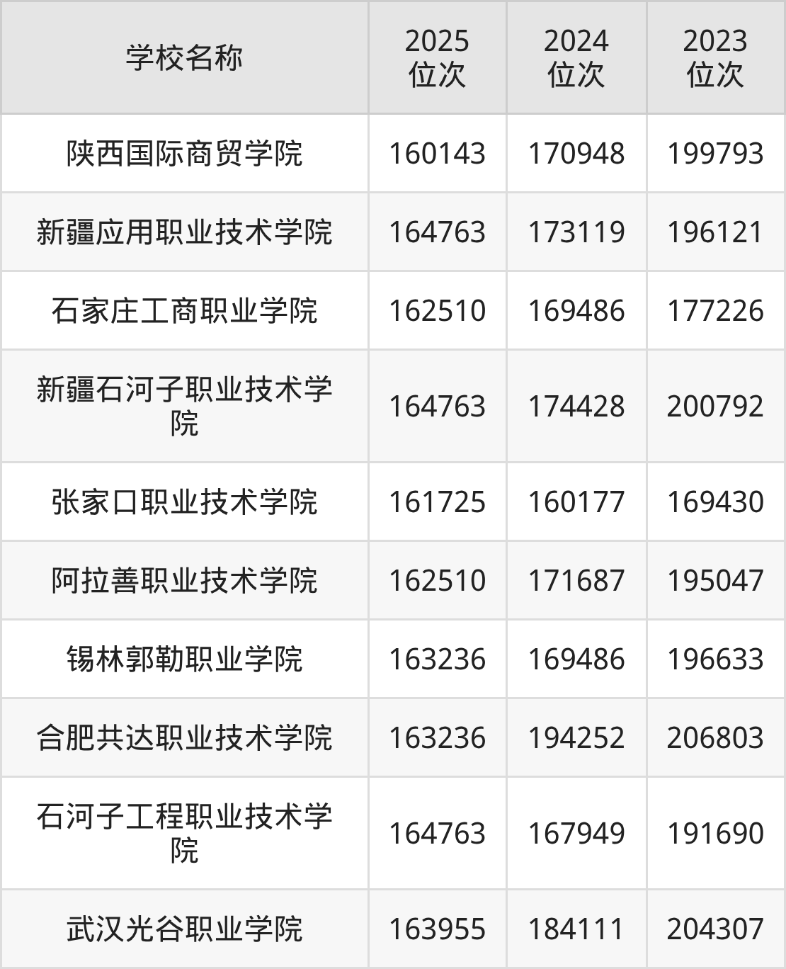 | 新疆交通职业技术大学 | 163962 | 293104 | 285317 |