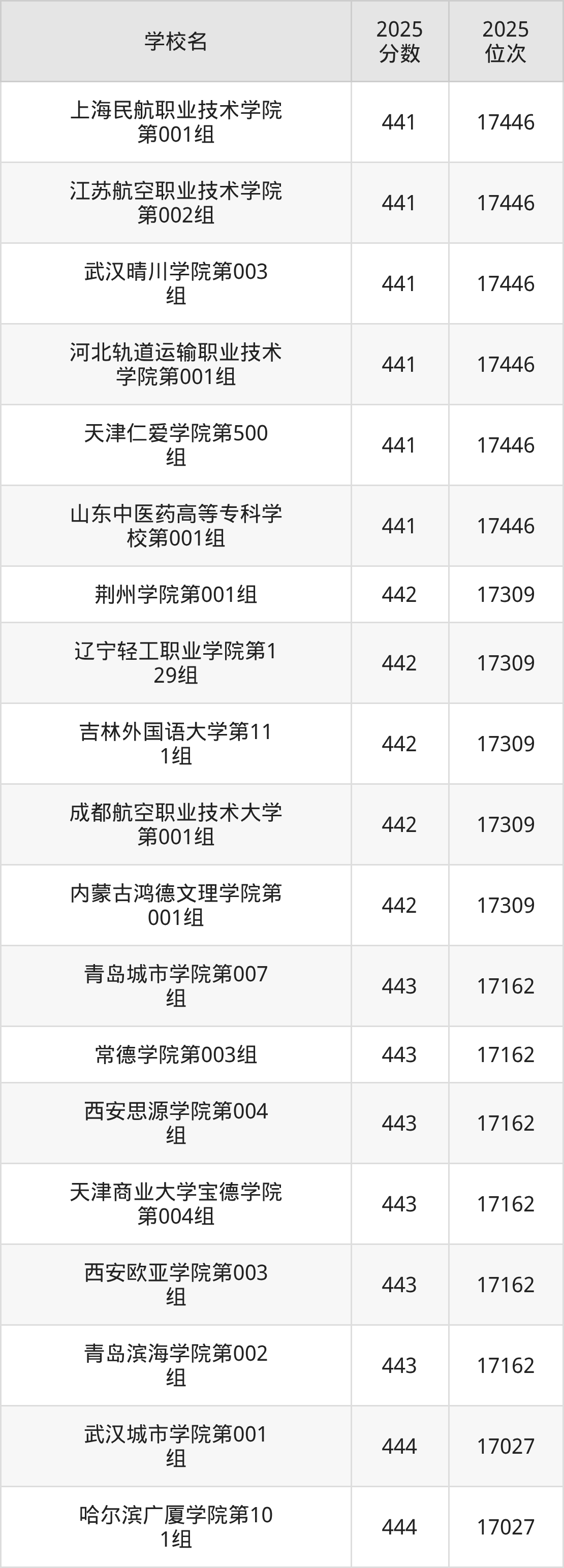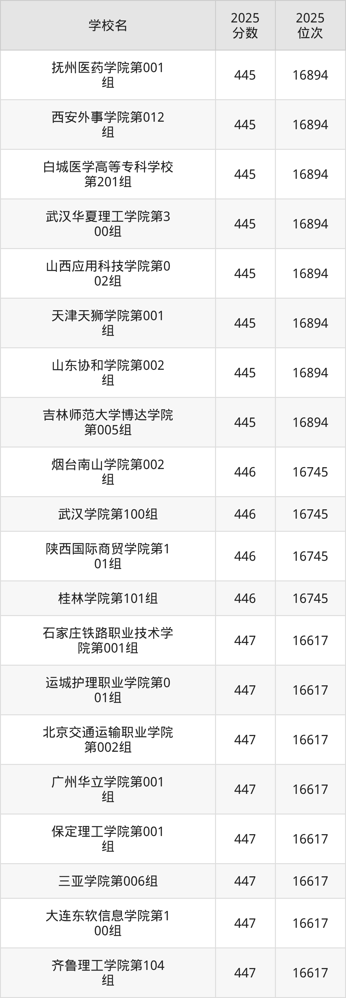 | 学校名 | 2025 分数 | 2025 位次 |
