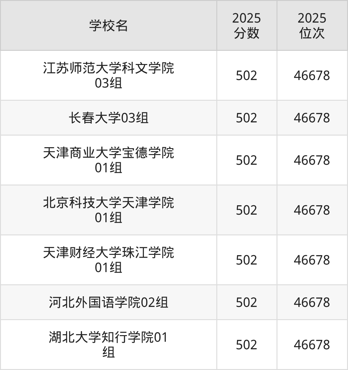 稳妥能上的大学:锁定2025年最低录取位次47000-47500名的院校,位次与考生当前位次基本匹配,录取概率较高,是报考核心区间。