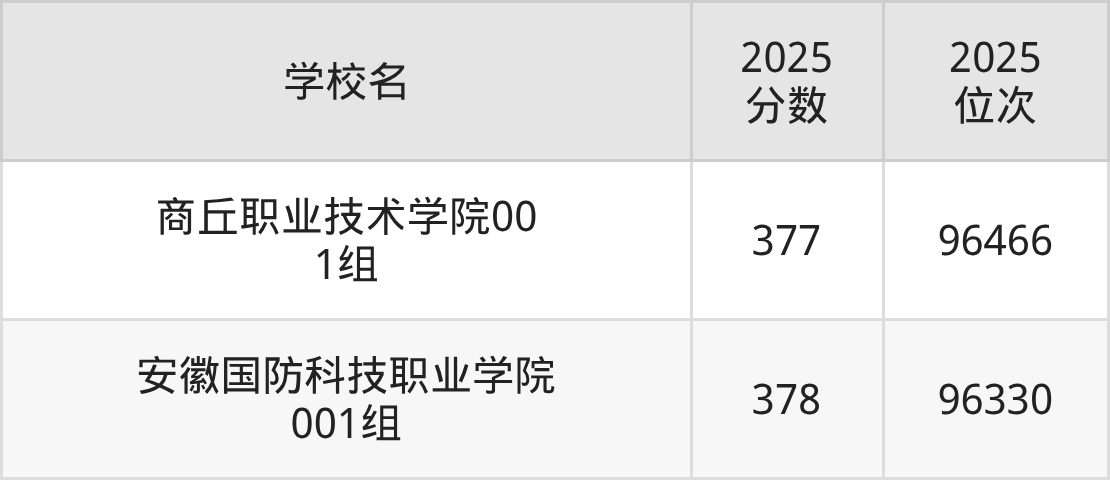 包含:商丘职业技术学院、安徽国防科技职业学院。
