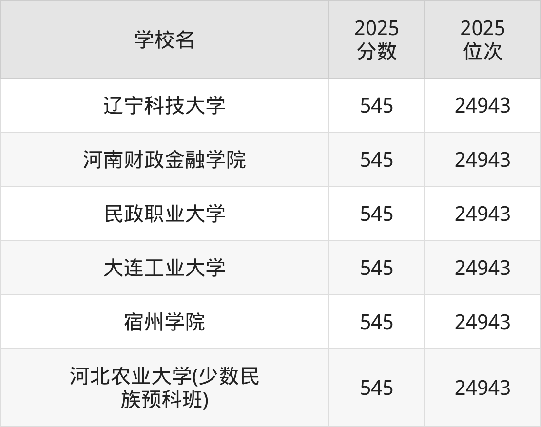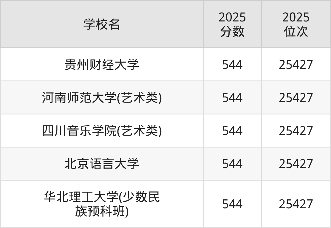 | 学校名 | 2025 分数 | 2025 位次 |