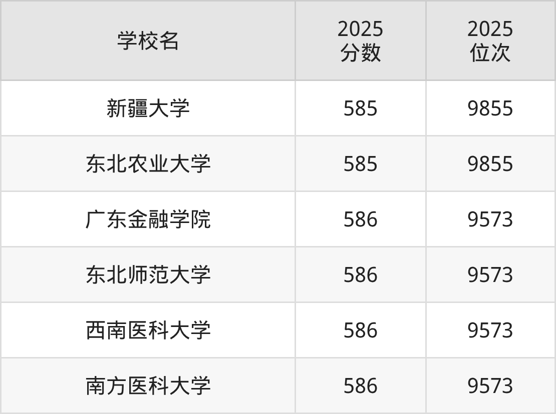 | 学校名 | 2025 分数 | 2025 位次 |