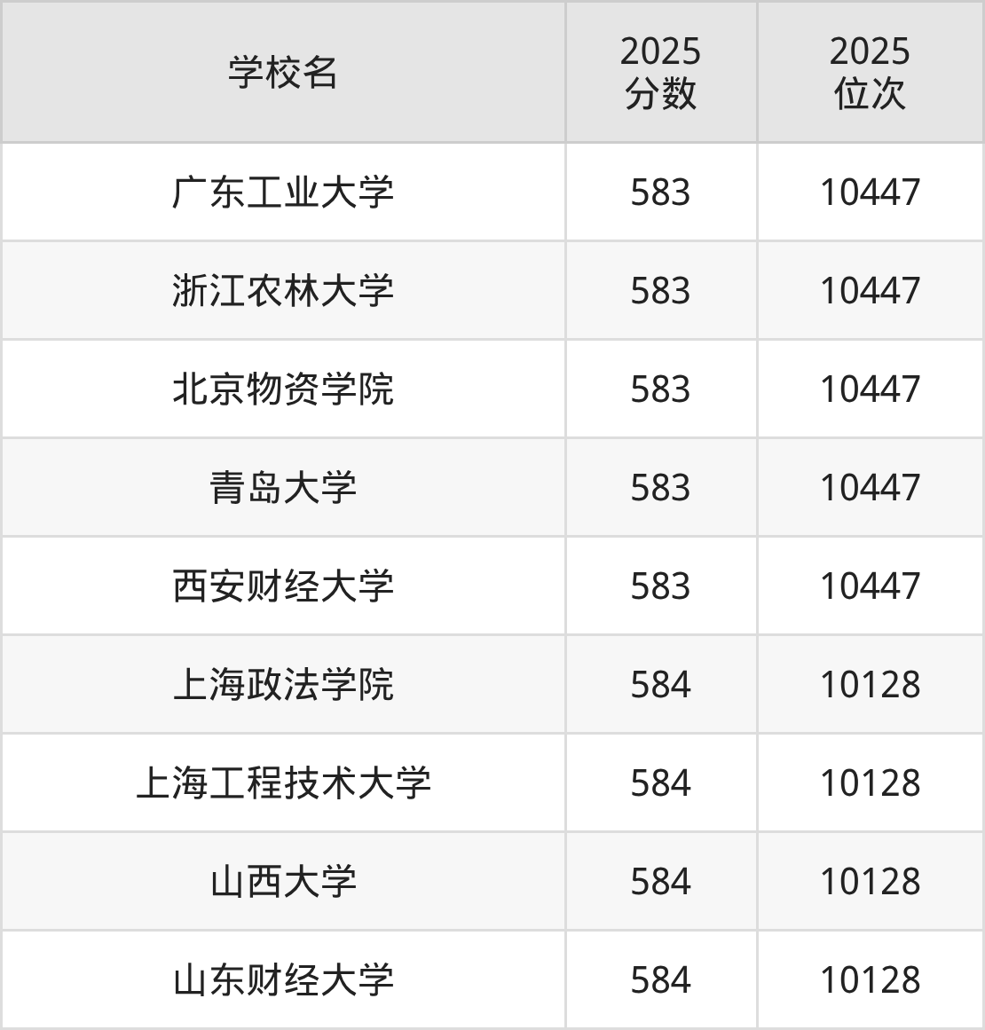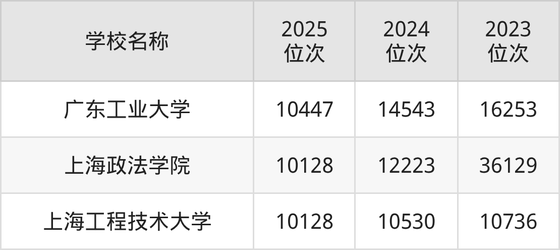 | 学校名称 | 2025 位次 | 2024 位次 | 2023 位次 |