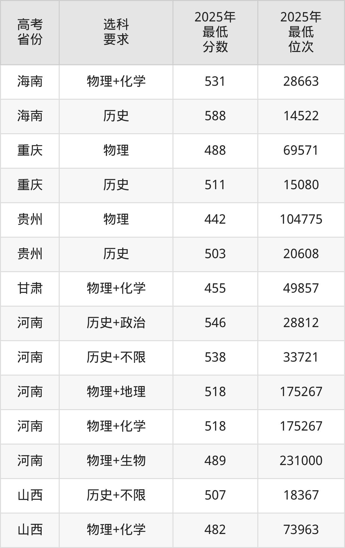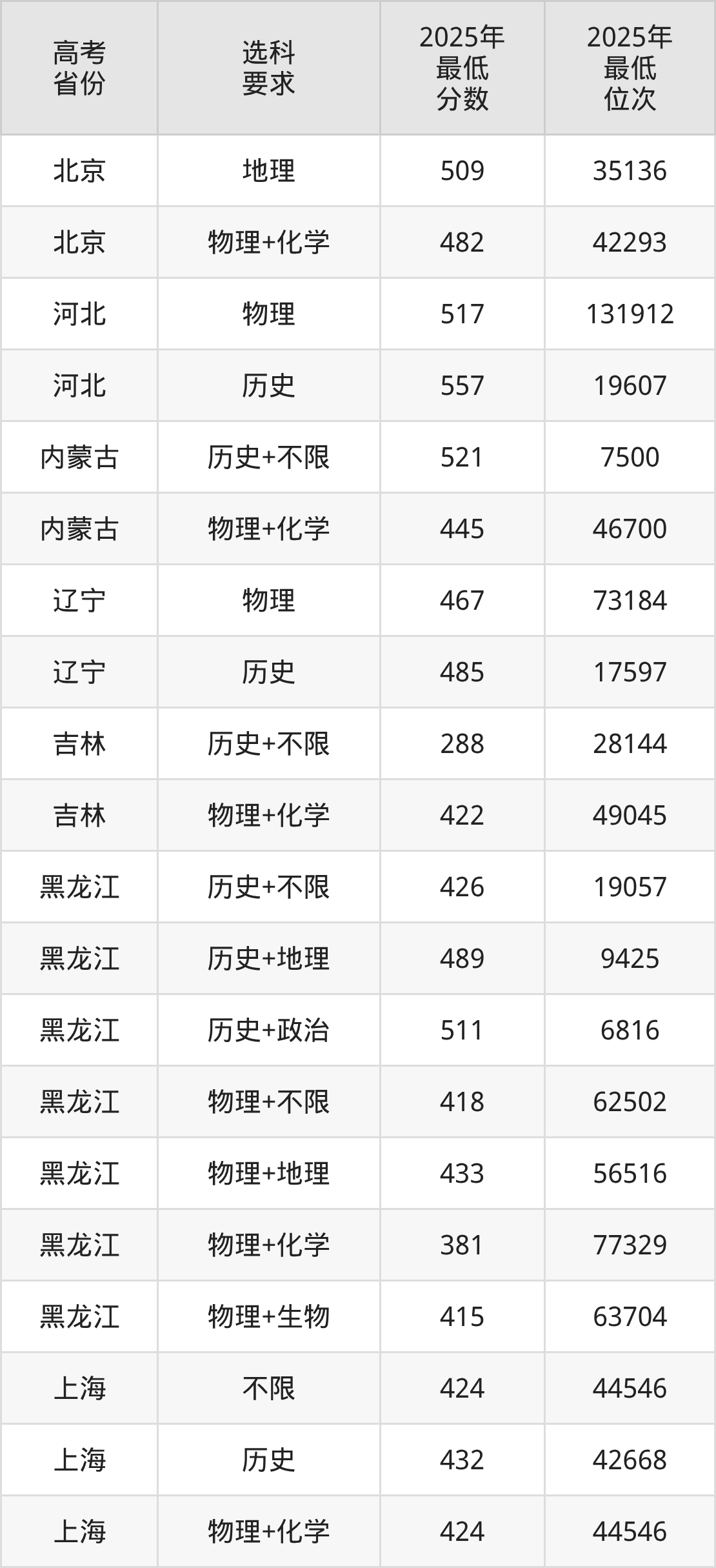 在2025年黑龙江高考物理类招生时,211收分最低的是郑州大学第003组,最低分是389分、位次是74217位。再看齐齐哈尔大学,2025年在黑龙江物理类的最低录取分数线是381分,最低位次是77329位。