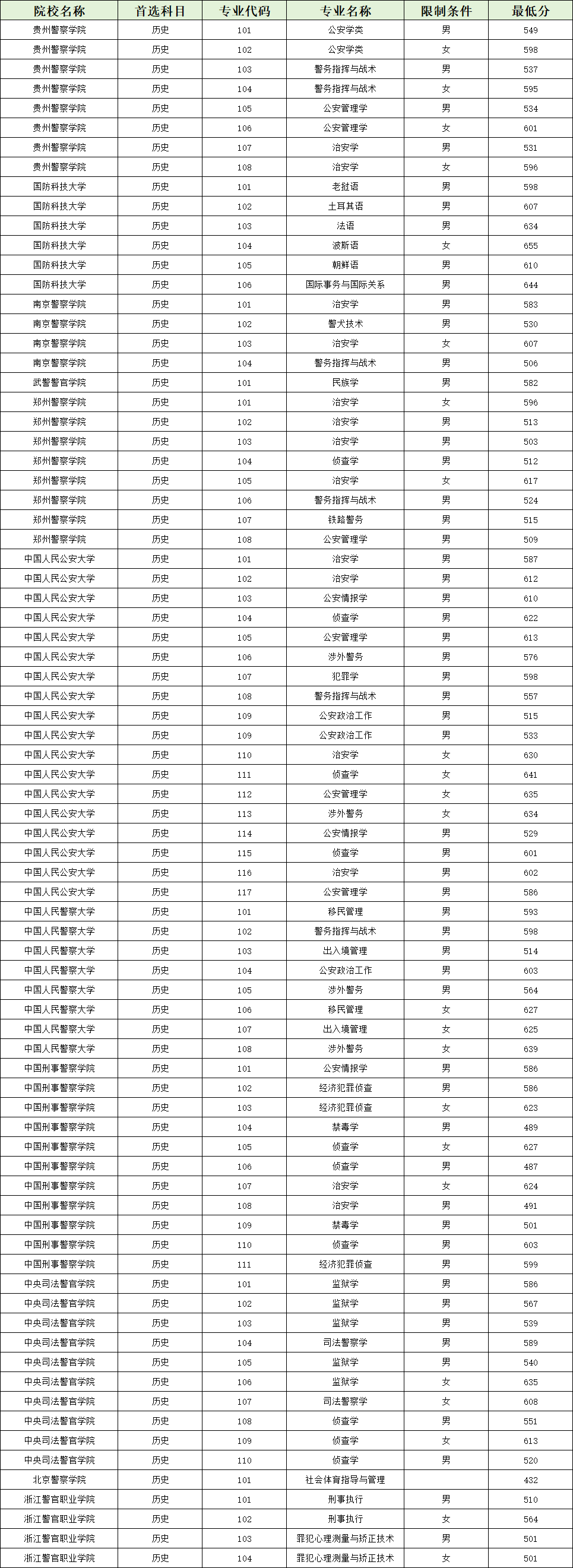 | 1130 | 中国人民公安大学 | 历史 | 女 | 638 |