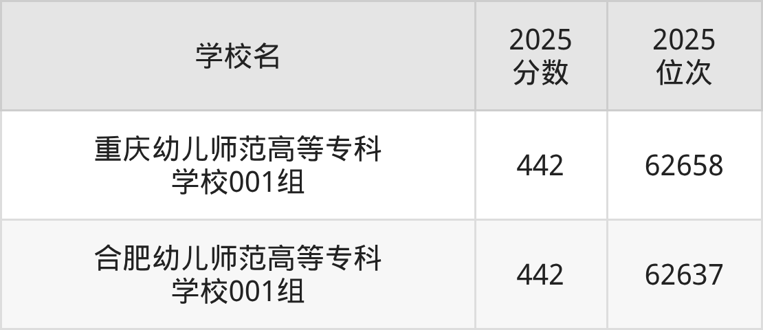 包含:重庆幼儿师范高等专科学校、合肥幼儿师范高等专科学校。