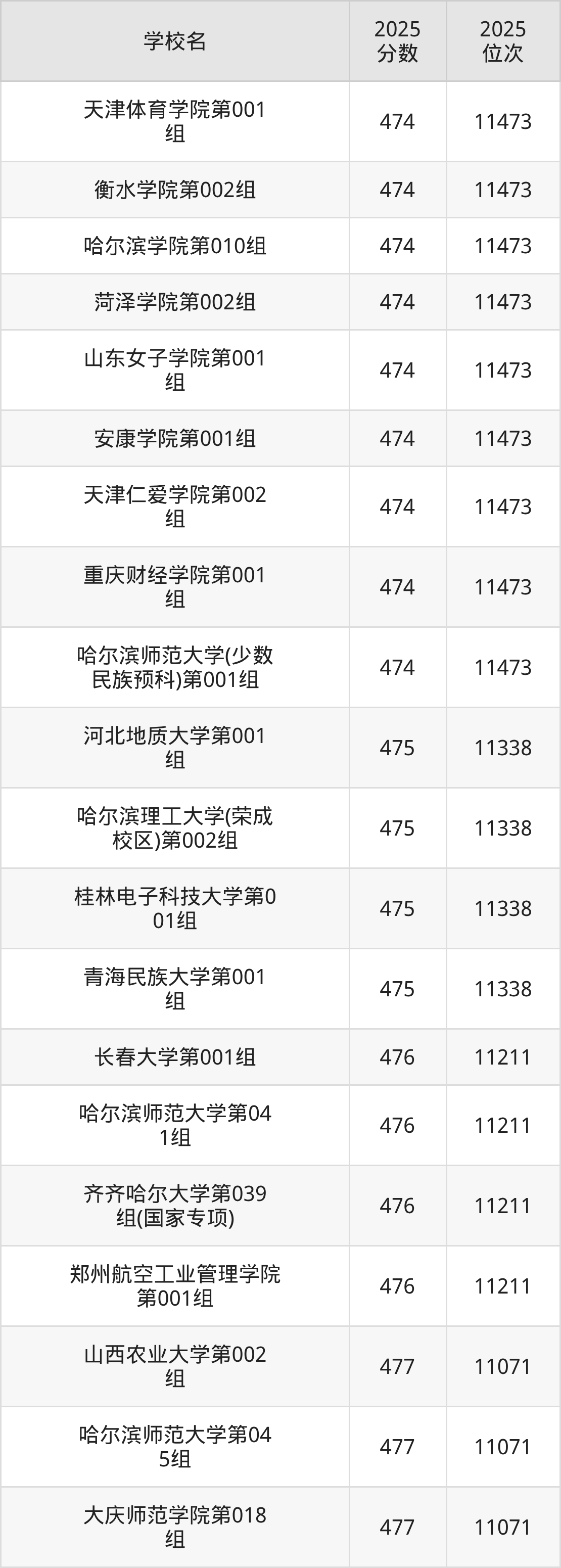 包含:天津体育学院、衡水学院、哈尔滨学院、菏泽学院、山东女子学院、安康学院、天津仁爱学院、重庆财经学院、哈尔滨师范大学(少数民族预科)、河北地质大学。