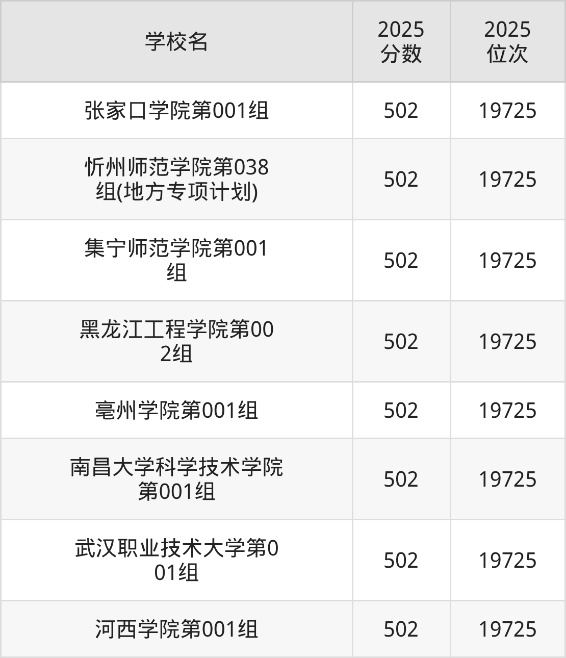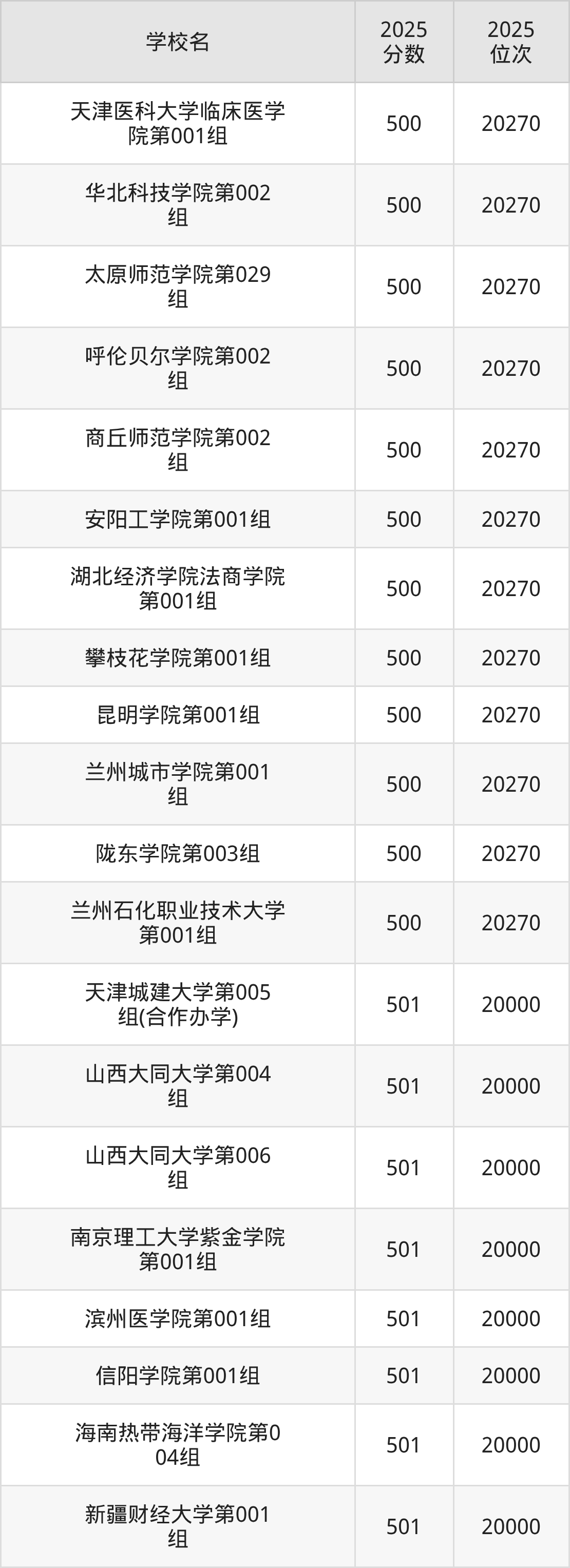 | 学校名 | 2025 分数 | 2025 位次 |