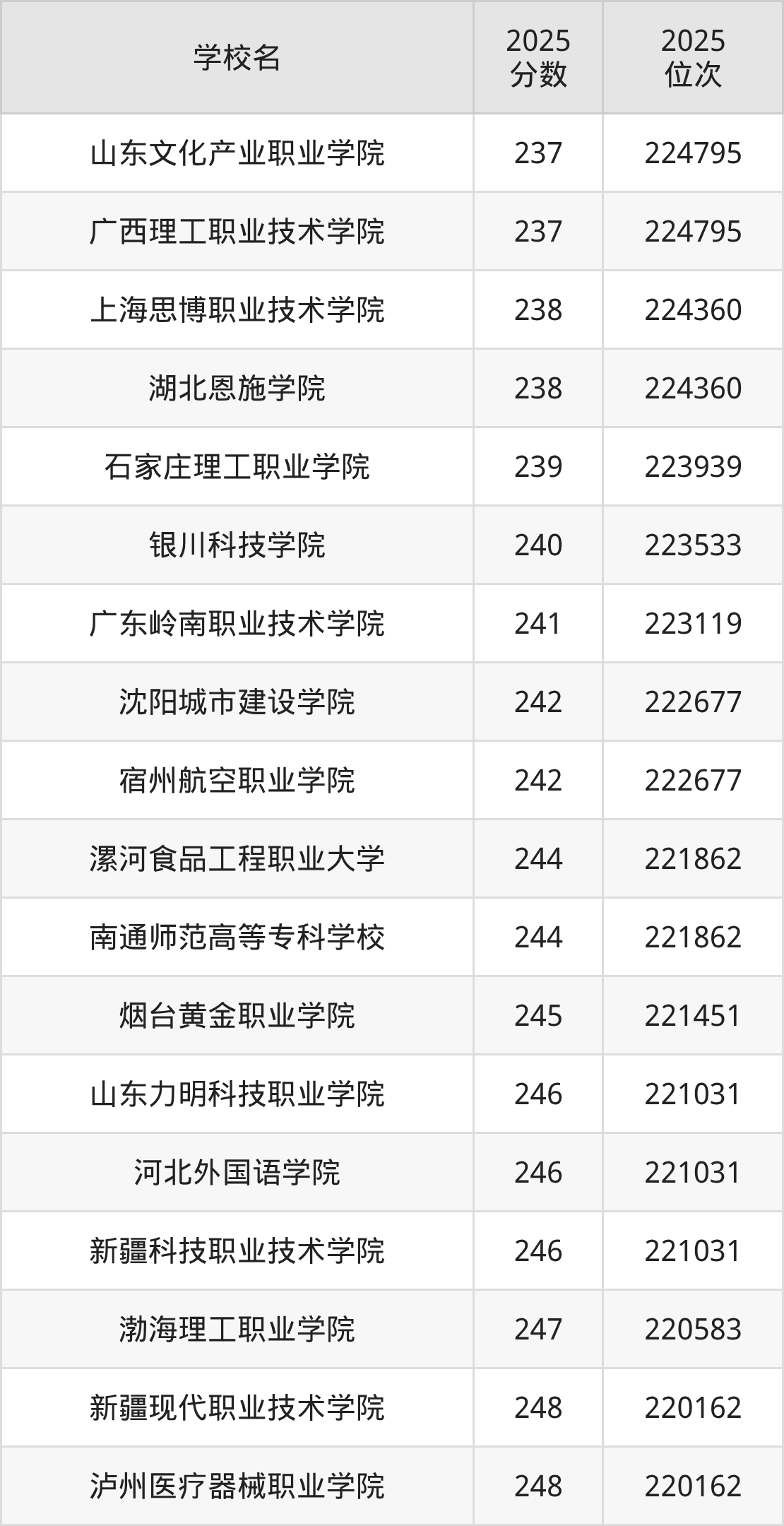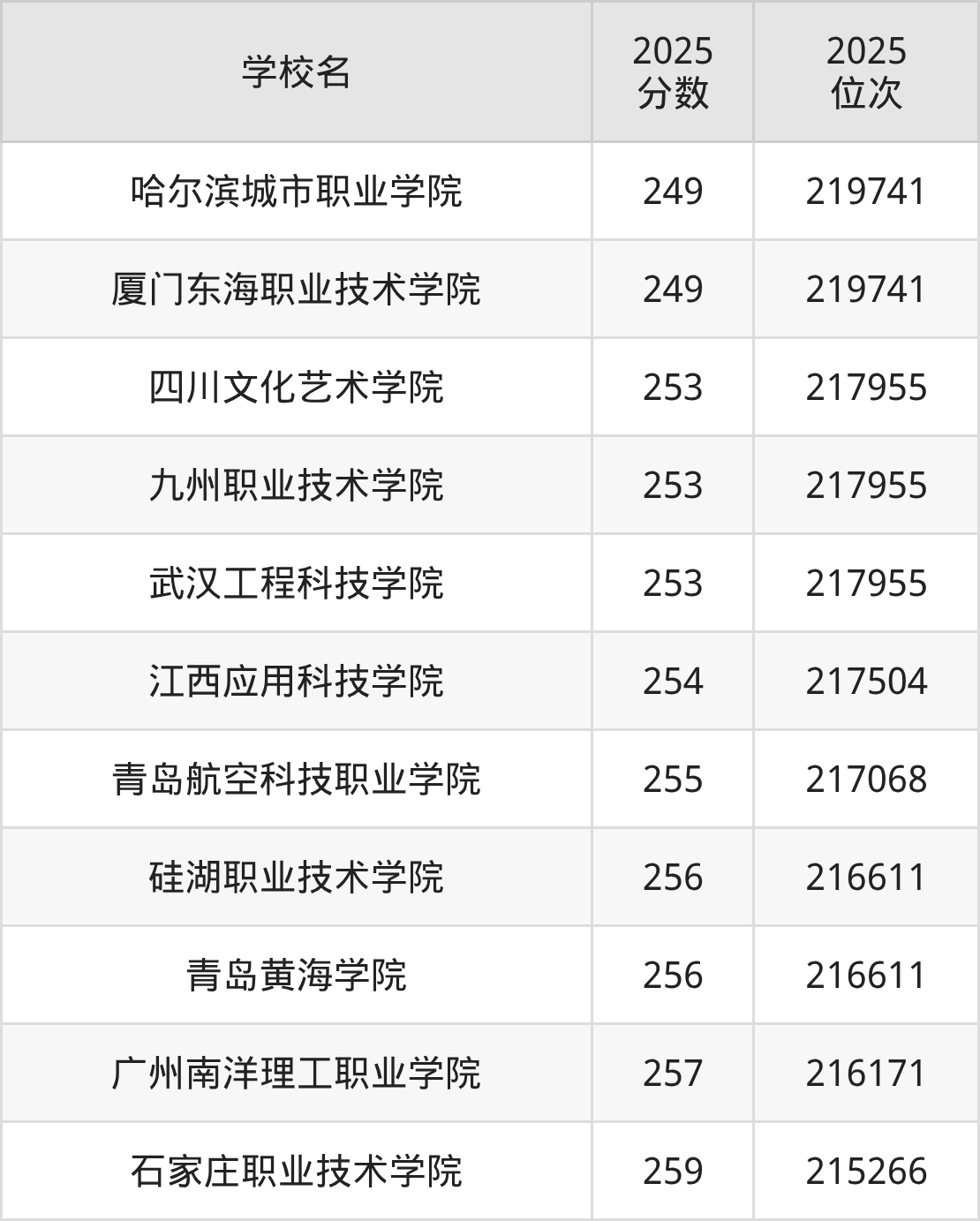 | 长春科技学院 | 224230 | 339227 | 300958 |