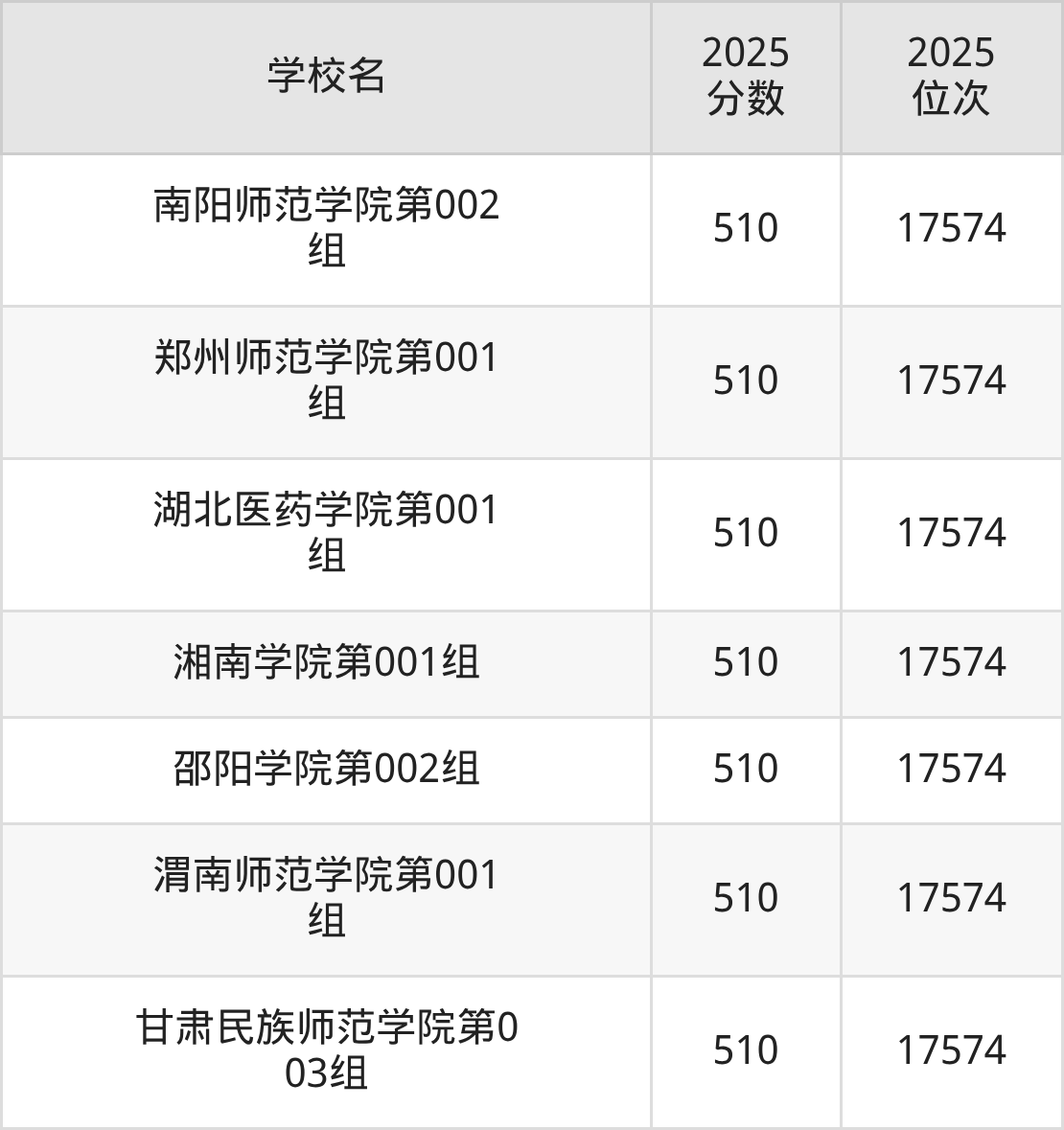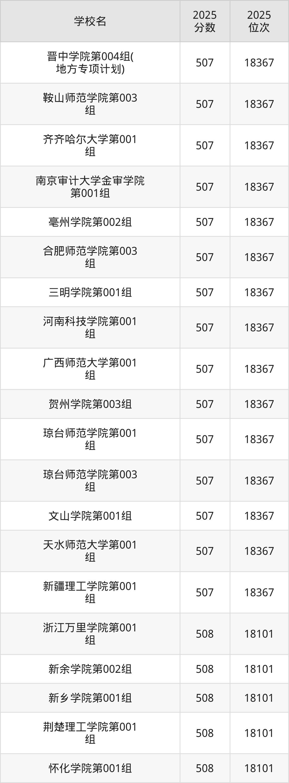 | 学校名 | 2025 分数 | 2025 位次 |