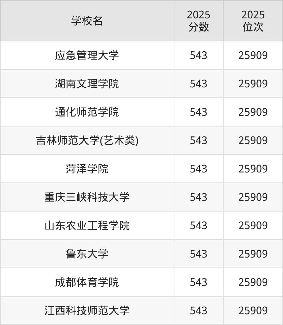 包含:应急管理大学、湖南文理学院、通化师范学院、吉林师范大学(艺术类)、菏泽学院、重庆三峡科技大学、山东农业工程学院、鲁东大学、成都体育学院、江西科技师范大学。